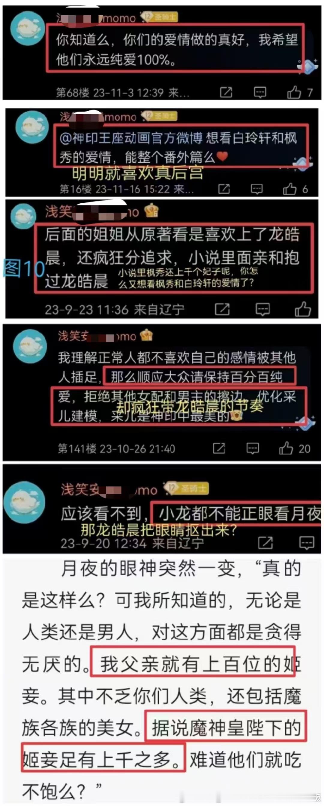 10、某CP粉暨圣采儿粉表示要求高度、百分百纯爱,不能接受擦边,然而表里不一,转头说想看枫秀和白玲轩的爱情(魔神皇枫秀有上千个妃子,且是白玲轩的鲨父母chou人魔族的老大,对白玲轩是纯欺pian,so,也就是说只有她采配得到纯洁无瑕的爱情,别的女人,例如白玲轩就只配得到纯欺pian呗,采粉这是什么纯爱理论?只适用于女主?别的nv人不配?),怪不得接受不了擦边呢,原来是喜欢真后gong,来,速速把真后gong给我们水果篮子安排上,如图10、图11、图12,明明就喜欢真后gong,却对比后gong轻微很多的擦边行为揪着不放,疯狂带龙皓晨jz,剑冢。