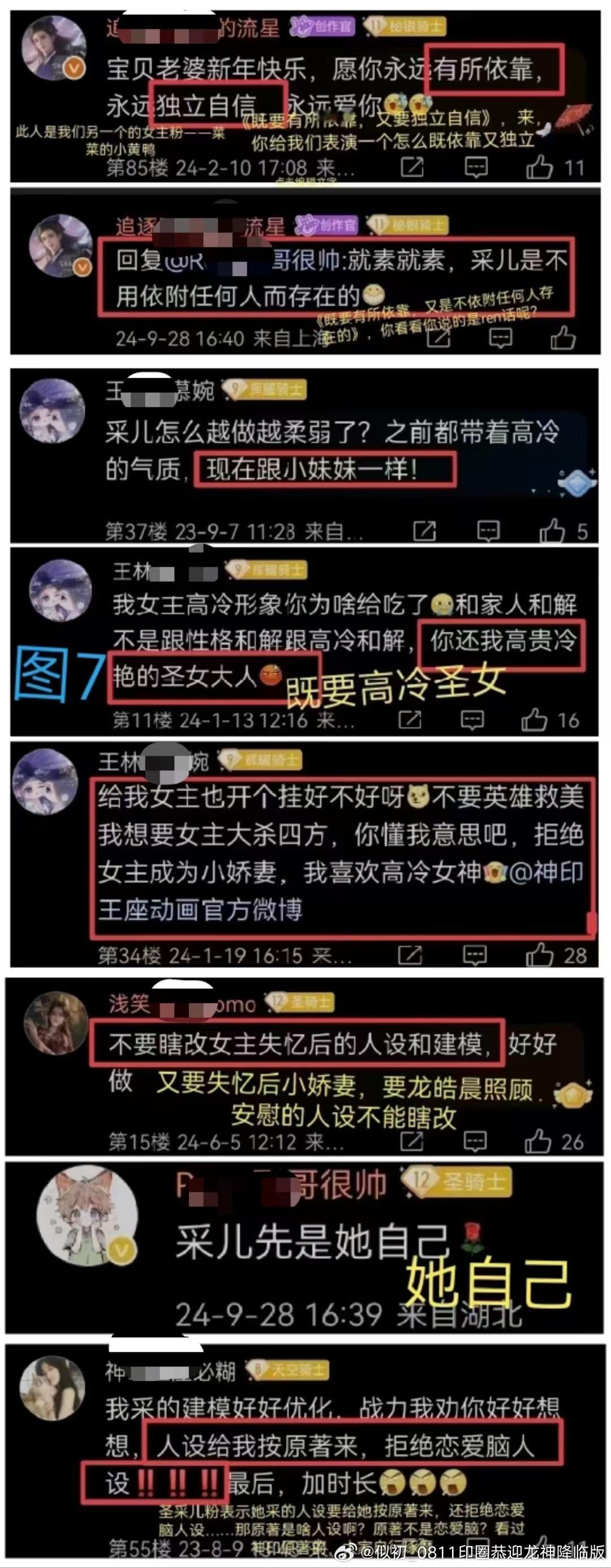 6、圣采儿粉不顾原著男主出身的骑士圣殿常年扶pin女主出身的刺客圣殿的事实,不顾龙皓晨前前后后救她几次命的事实,不论是她高攀龙皓晨,非说有她是龙皓晨的福气,如图6。