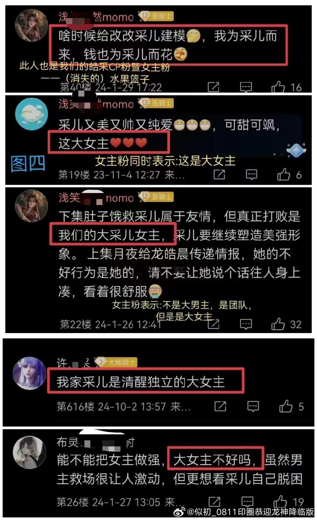 3、圣采儿粉一贯左右脑互b,一边表示这不是大男主,是团队,但是同时表示这是大女主,如图2、图4。