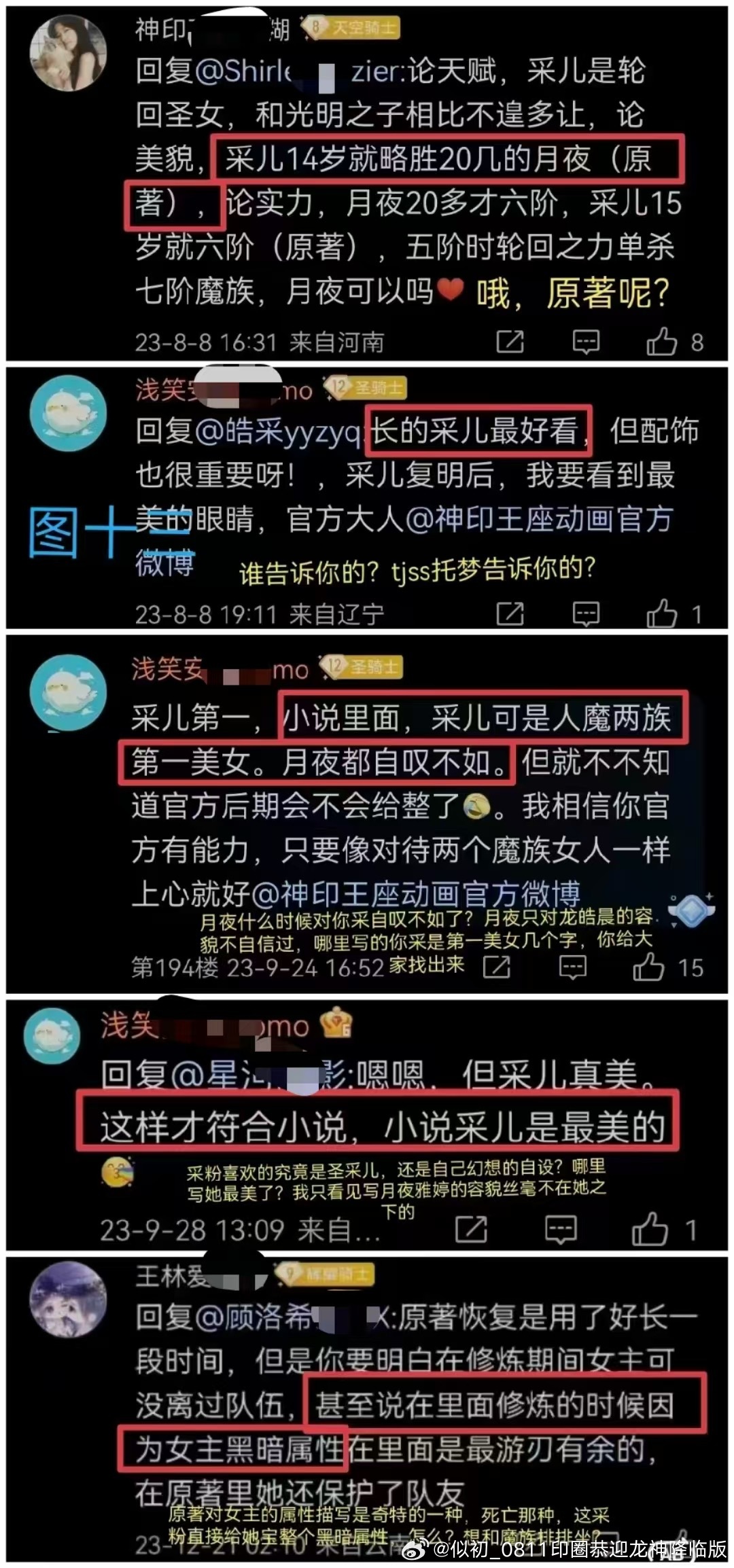 11、圣采儿粉一向喜欢随口糊说8道,喜欢自己幻想的一切,随口圣采儿最美,随口圣采儿原著没有像动漫那样打队友,甚至连自推的属性都说错,然而事实真是如此么?如图13、图14,请问各位遵jsf,道德标准高的采粉,你女暴da杨某人那集,连累龙皓晨全网被骂输不起的时候,官博下面男主粉可有疯狂带你女的jz没有?翻遍了,没看见,要不你们现在穿越回去加点儿?只看见一堆表示理解或者探讨的;然而驱魔关时候,雅婷一出现,你方跳出众多人,反反复复带男主jz,你们敢说你们对龙粉问心无愧?如图15、图16、图17、图18。