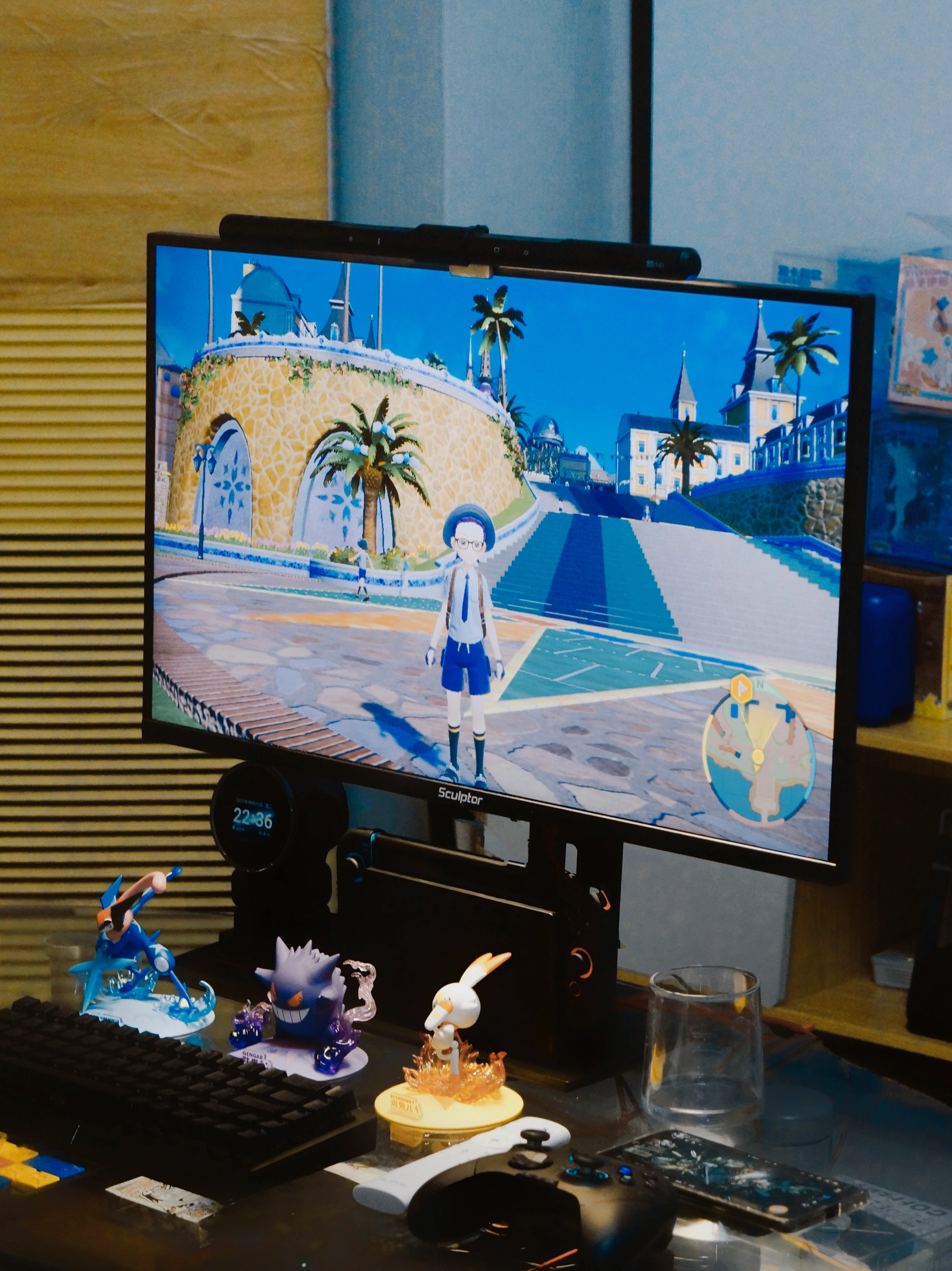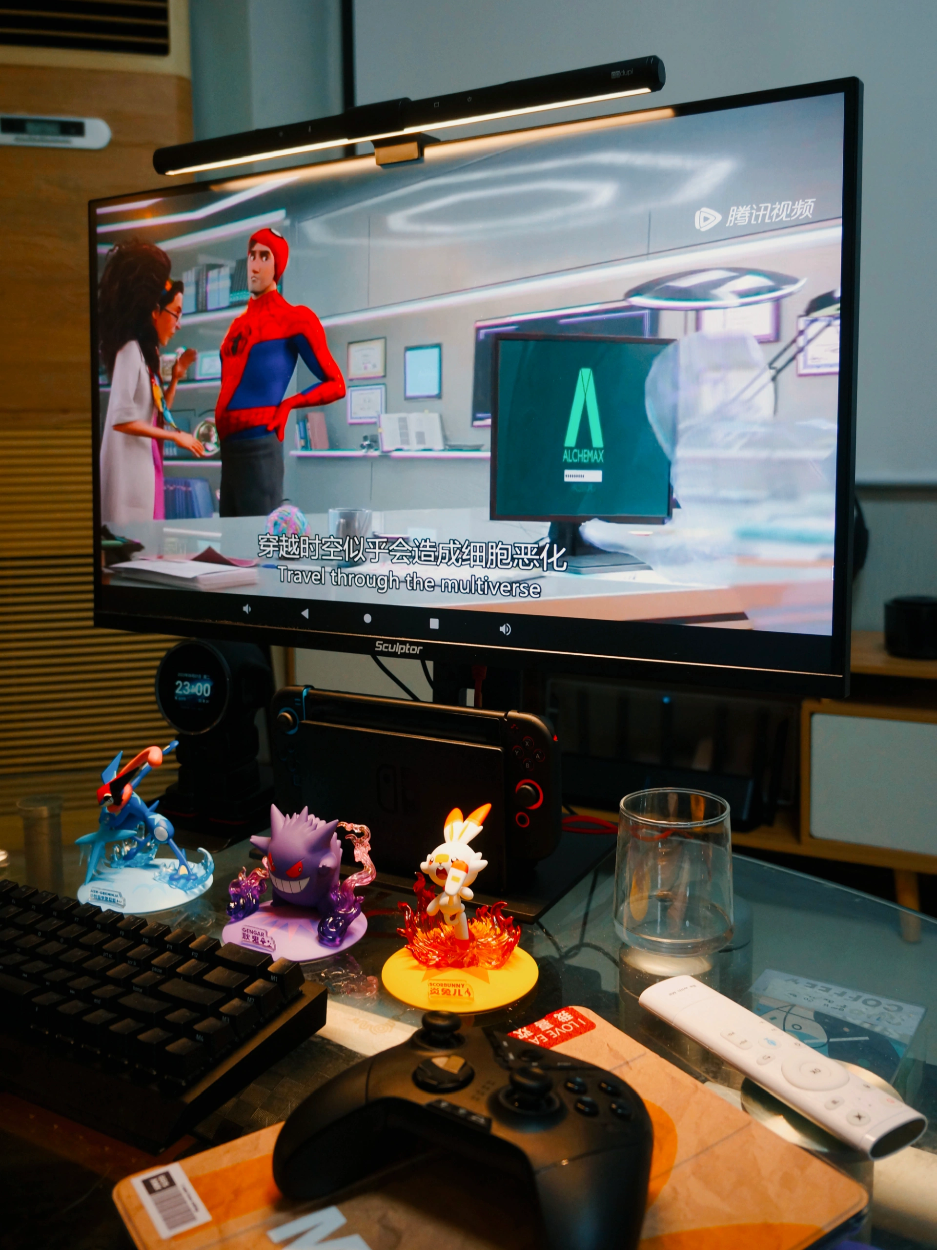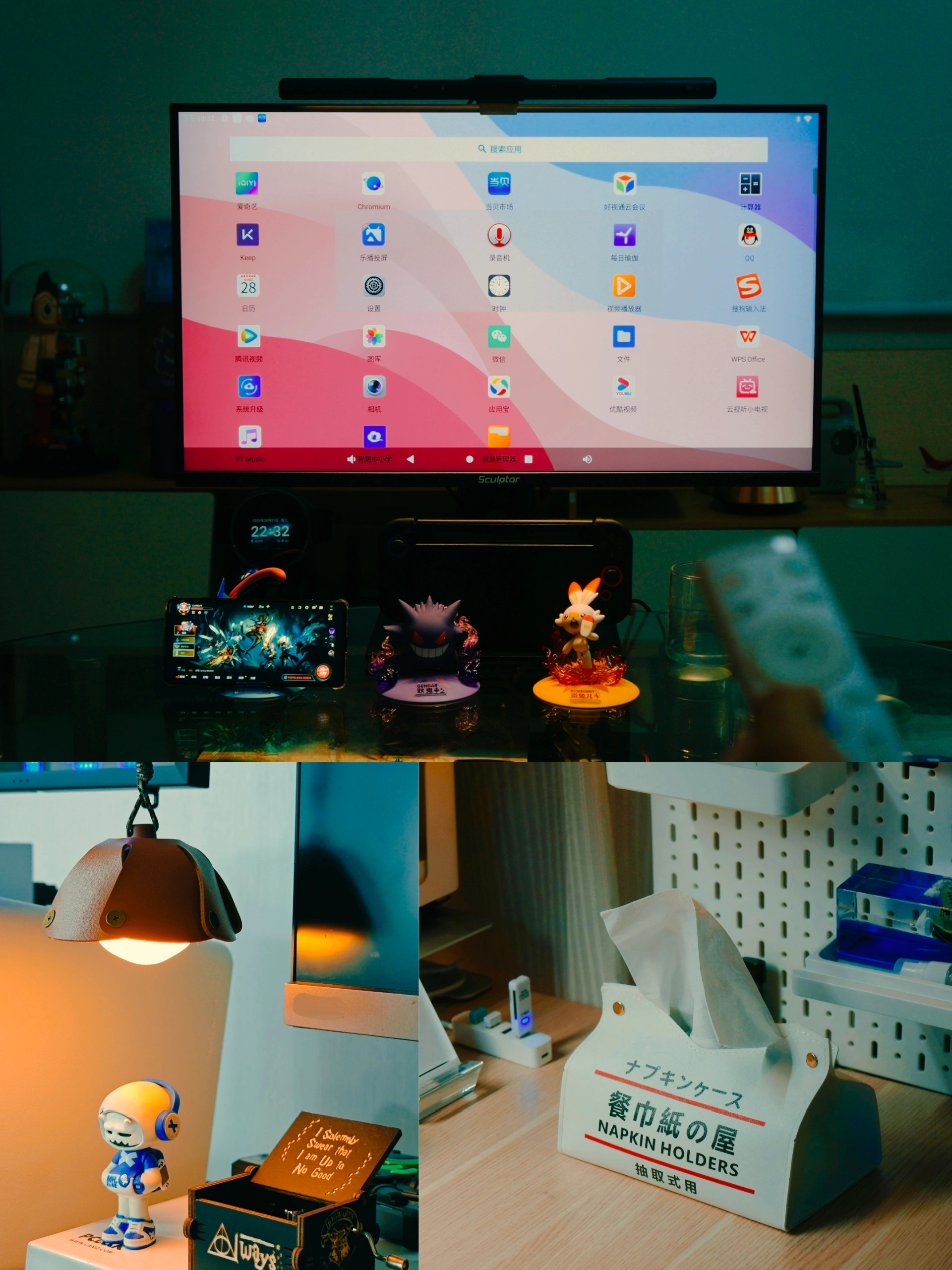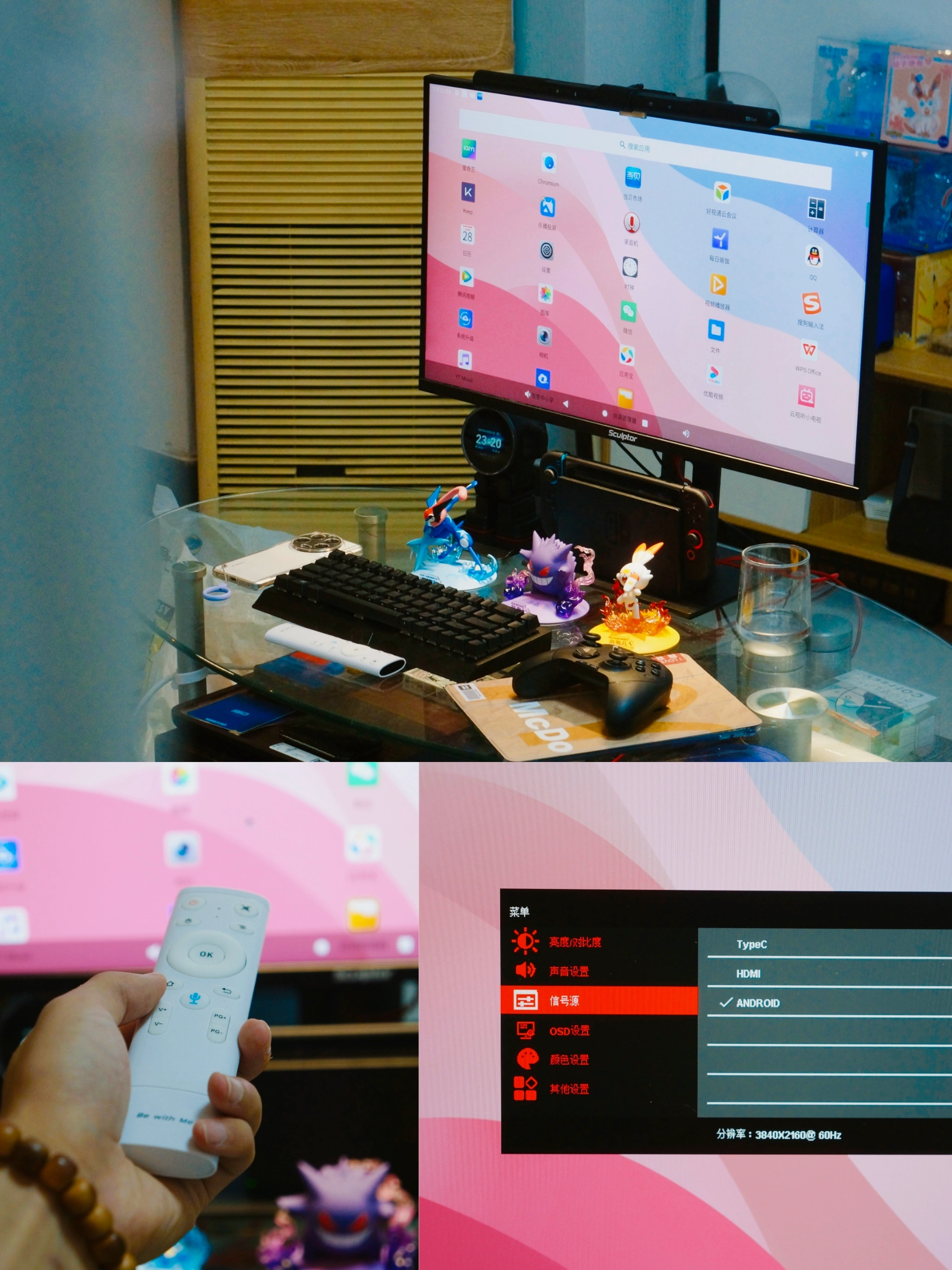 🖥4m²的书房空间主要是办公使用,日常也主要应付一些文字工作,娱乐还是躺在沙发上舒服。所以最近在客厅直接添置了个显示器使用,一体机自带安卓系统可以独立使用也可以连主机当显示器,还可以反向供电游戏机,日常直接躺沙发玩宝可梦很舒服,27寸4k的屏幕看剧也很爽。