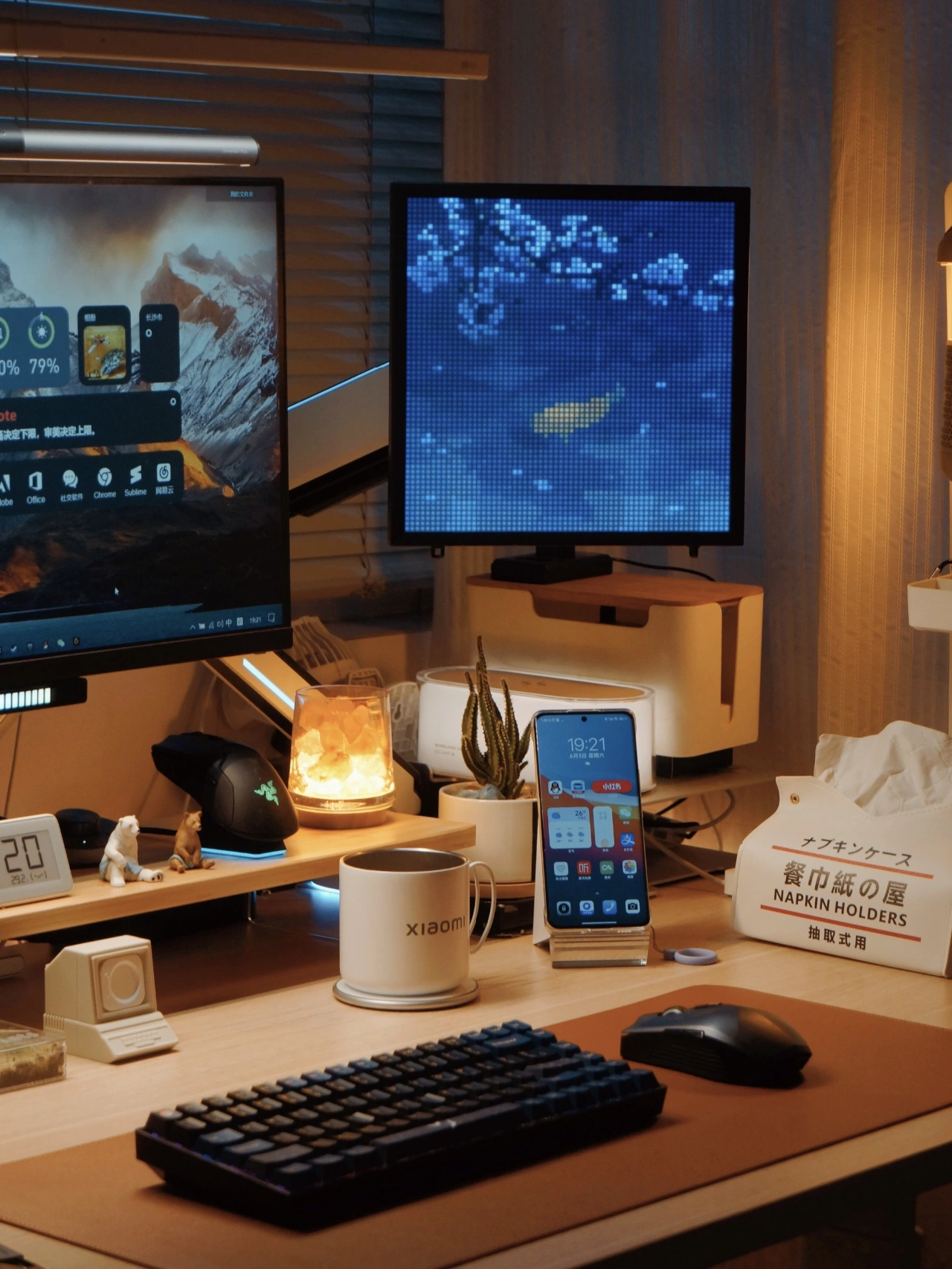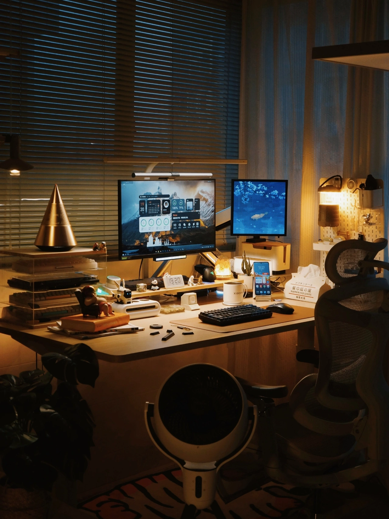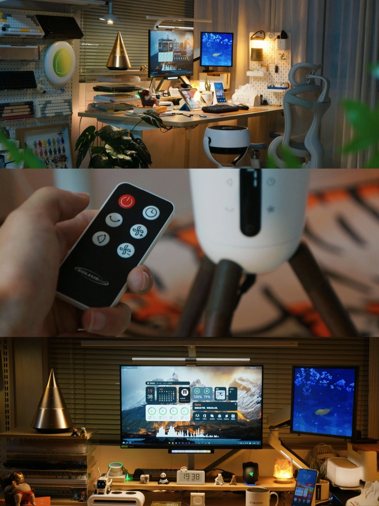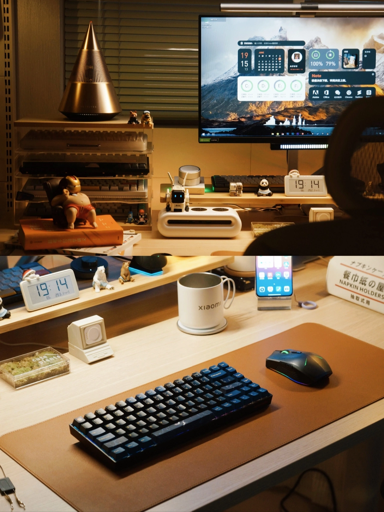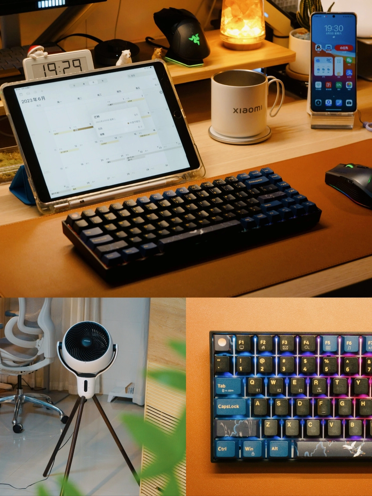 👨‍💻一个赏心悦目的桌面不仅让工作更有动力, 让娱乐更具氛围,也是作为使用者的一番成就 晒晒我的桌面 独居生活 我的书房 . 🌇喜欢每天傍晚时刻开启这温馨的一角,独自一人享受在书房的沉浸工作,听着歌,吹着风,码着字。 . ⌨️最近给键盘换上了几个国风的键帽,搭配是上桌面更有韵味了,键盘84的小巧布局更节省桌面空间,无线链接也避免桌面杂乱,夜晚使用搭配自然流光的RGB也很有氛围感。 . 热拔插的键盘轴方便替换自己喜欢的轴体,但是个人码字还是不比较喜欢用红轴,使用更轻巧,平时蓝牙多设备连接切换也方便。2000mAh电池的长续航日常外出携带使用也没问题。 . 🎐平时在书房工作总是会开启空气循环扇,有一个更清新的工作环境,大范围的送分在夏日还可以更好的带动空调效果。 . 🎶音乐也会让我更沉浸的工作,链接手机来上一首歌,享受360°环绕的声音,灯光也随着音乐律动,让我这个角落也不再寂静 . ♡内容仅个人想法分享,分享食用; . 📄产品清单: 🖥️|显示器:24.5寸/165hz ⌨️|键盘:新贵 GM840Pro 🖱️|鼠标:机械师 无线鼠标 🎛️|音箱:Trettitre 弹头音响 🎐|风扇:舒乐氏三角空气循环扇 👨‍💻|升降桌:蓝立哆 160cm 🏷️I其他:请看笔图片标签/往期 . 我是𝗖𝗮𝗹𝗹𝗠𝗲𝗙𝗙,希望我的分享能给你带来帮助; . 租房也要幸福 每天都要晒键盘 桌面布置 数码问题在线求助 数码大玩家 看键盘猜游戏 好物分享 我家的可爱怪东西 租房也要幸福 长沙工作