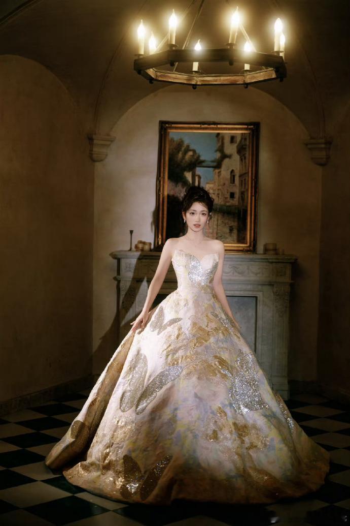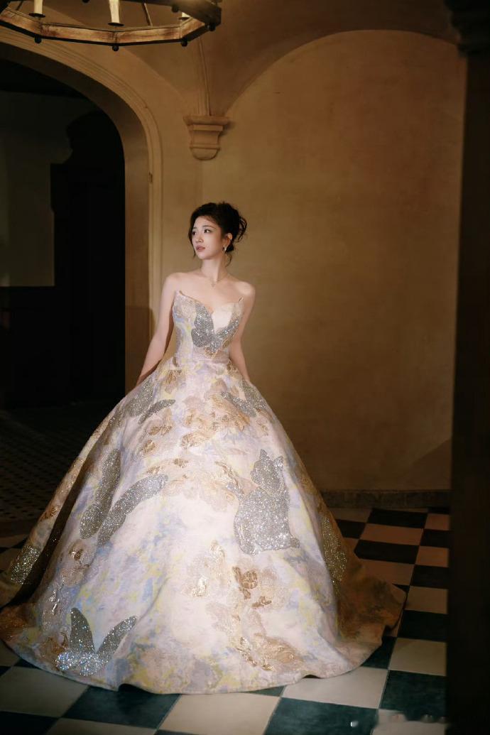 张予曦珍珠珊瑚礼服张予曦今天是珊瑚新娘 珊瑚色衬气质,珍珠显精致,张予曦