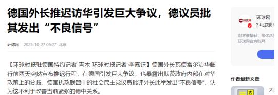德国外长瓦德富尔闯下大祸,鲁莽取消对华访问行程之后,德国外长遭到德国内部尖锐批评! 不仅让本就微妙的中德关系更添变数,还在德国国内掀起了轩然大波,社民党发言人直接开炮,说这举动发了“不良信号”,全球局势这么紧张,跟中国中断对话简直是昏招,反而该把沟通的口子越开越大。 这场闹剧的导火索,其实是瓦德富尔访华前的“口嗨”。他在接受路透社采访时,一边要求中国放宽稀土出口,一边对台海问题指手画脚,声称要“自定义一中原则”。这种既要好处又要踩红线的操作,彻底激怒了中方。 外交部发言人郭嘉昆当场表态:一中原则没有任何“自定义”空间。结果可想而知,除了外长王毅的会面,其他行程全部被中方“技术性搁置”。瓦德富尔原本想带着企业诉求来谈合作,最后却落得个无人愿见的下场,开创了德国外长访华被东道主集体拒见的先例。 德国国内现在乱成一锅粥,执政联盟内部吵得不可开交,社民党指责基民盟(瓦德富尔所属党派)的对华政策“既幼稚又危险”,而基民盟则反呛社民党“太软骨头”。 这种内部分歧直接反映在经济数据上:2025年前8个月,中国以1634亿欧元的贸易额重新成为德国最大贸易伙伴,而美国对德出口却暴跌7.4%。 更讽刺的是,德国汽车巨头们用实际行动打了瓦德富尔的脸——奔驰宣布投资140亿人民币扩建中国工厂,宝马在沈阳的电池中心二期也正式投产。这些企业高管私下里抱怨:政客们在台上吵架,最后买单的却是我们。 最尴尬的是瓦德富尔的“极限施压”策略完全反噬了德国自身。他原本想借着欧盟的“反胁迫工具法案”向中国施压,结果欧盟内部先炸了锅。 法国、波兰等国支持强硬路线,而意大利、西班牙则坚决反对,担心制裁会让欧洲失去中国市场。 德国企业界更是急得跳脚,大众集团警告说,如果稀土供应继续受影响,德国电动汽车产能可能下降30%。 更要命的是美国的关税政策正在把德国推向中国——2025年1-8月,德国对华进口增长8.3%,而对美出口暴跌23.5%。这种“东边不亮西边黑”的局面,让瓦德富尔的外交努力显得格外可笑。 现在最着急的可能是德国总理默茨,他原本指望通过访华提振经济,结果被瓦德富尔搅了局。默茨的支持率已经跌到32%,如果再拿不出像样的经济政策,恐怕位子都难保。反观中国,态度始终不卑不亢。 外交部多次强调,中德合作的大门始终敞开,但前提是相互尊重。这种“以静制动”的策略,让德国政客们意识到:在全球产业链深度绑定的今天,任何单边主义的冒险都只会搬起石头砸自己的脚。 瓦德富尔的这场“外交灾难”,本质上是德国政治精英的战略误判。他们既想在中美之间投机取巧,又不愿放弃意识形态优越感,结果把自己逼进了死胡同。 德国媒体现在开始反思:当美国用关税政策把盟友推向中国时,当中国成为德国经济复苏的关键力量时,那些整天喊着“去风险”的政客们,是不是该醒醒了?毕竟,在这个相互依赖的时代,对抗从来不是解决问题的办法,合作才是唯一的出路。 来源:环球网 【德国外长推迟访华引发巨大争议,德议员批其发出“不良信号”】