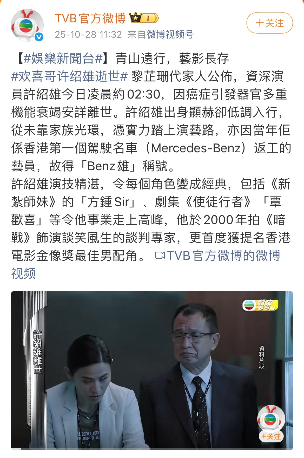 欢喜哥许绍雄逝世“绿叶”演成了经典,欢喜哥愿安息