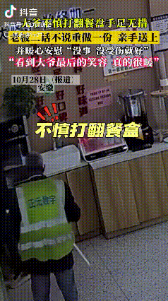 暖心举动!安徽,一位身穿黄马甲的大爷在店里吃饭,不慎打翻餐盘饭菜洒落一地,餐盘掉地的声音吸引了其他顾客的注意,一时之间大爷显得手足无措,饭店老板发现后二话不说直接让服务员给大爷在来一份,并且表示没受伤就好,后来重新做了一份端给大爷后,大爷也是满脸笑容眼里全是感激。 大爷打翻餐盘是无心之举,但是老板的善良却是发自内心的,不仅关心大爷有没有受伤,而且还让重新给大爷做了一份,这样的举动很暖心,下次大爷肯定还会继续去光顾。 做生意不能只顾眼前利益,目光要放长远,这样生意才会越做越好越做越大。