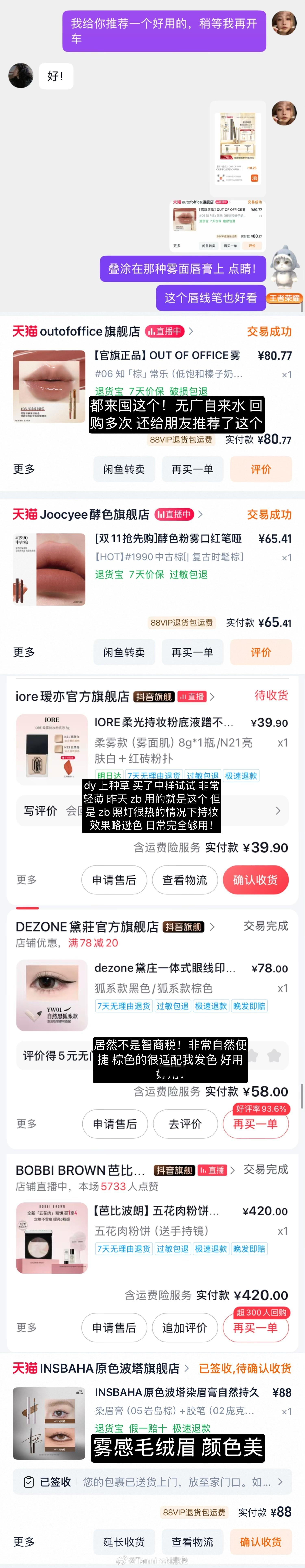 晚上 wb 这边先 bo 个化妆聊天推荐些 1111 要入的东西叭