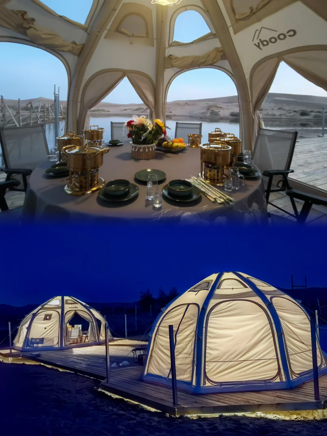 在沙漠里露营,吃着火锅放着烟花
