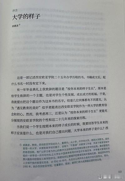 穿越记忆的河流 2024年11月29日,上午在欧亚学院一个礼品店胡建波院长说要送我礼物,我说不要其它的就要两本书,在西安飞厦门的飞机上看完了两本书,《教育的偏见》阐述了胡建波院长对教育自己独特和深刻的见解,也付诸了实践,真是太棒了!另一本书《按你本来的样子生长》讲了欧亚学院如何披荆斩棘、九死一生创业的历程和如何办大学的理念。《按你本来的样子生长》书中的三篇序言写得太好了,大学之所以为大学,让人深思。胡建波院长写的序三“大学的样子”。[很赞][玫瑰]