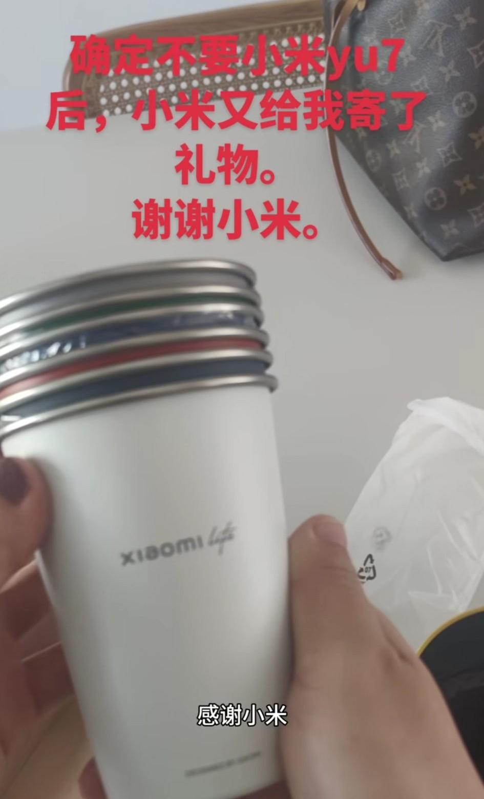 江苏。女子发视频称:自己已经确定不要小米yu7了,小米公司还给她送上了关怀礼——一个小米的杯子和9个直饮杯…… 女子表示:自己纯属是因为不喜欢这款车的外观才不要她的,自己已经确定不要这台车了,小米还能送上关怀礼,真的非常不错! 视频中,女子多次对小米做出了感谢! 网友吐槽: 五千块钱买了九个杯子,还特意发个视频感谢它一下,挺乐观心态好的! 也有网友表示:人家小米遵照合约,不给你寄关怀礼你也挑不出他任何毛病! 评论区的网友们,你们怎么看?
