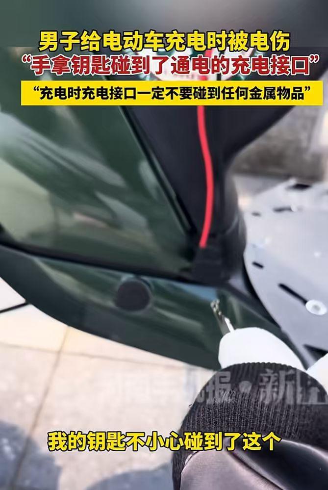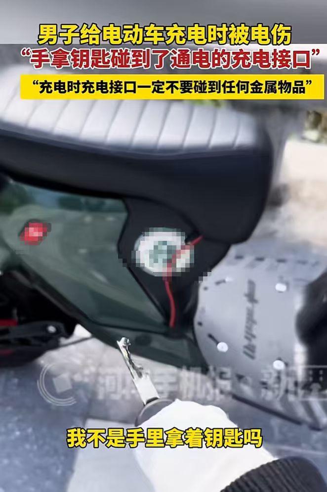 “太吓人了!”10月26日,江苏苏州,一男子手里拿着钥匙给电动车充电,结果不慎碰