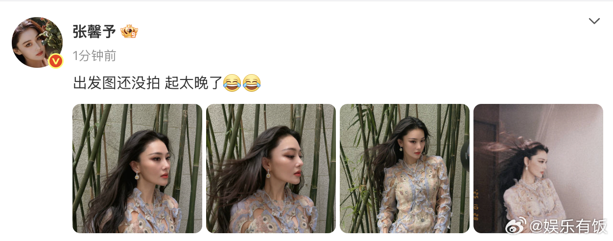 张馨予起太晚了还没拍出发图 的可爱现场!因为“起太晚了” 没来得及拍出发图,结果随手一拍就是氛围感大片:一袭精致纱裙搭配飘逸长发,每一张都是姐的美貌~只能说美女就算起晚了,颜值也从不迟到!