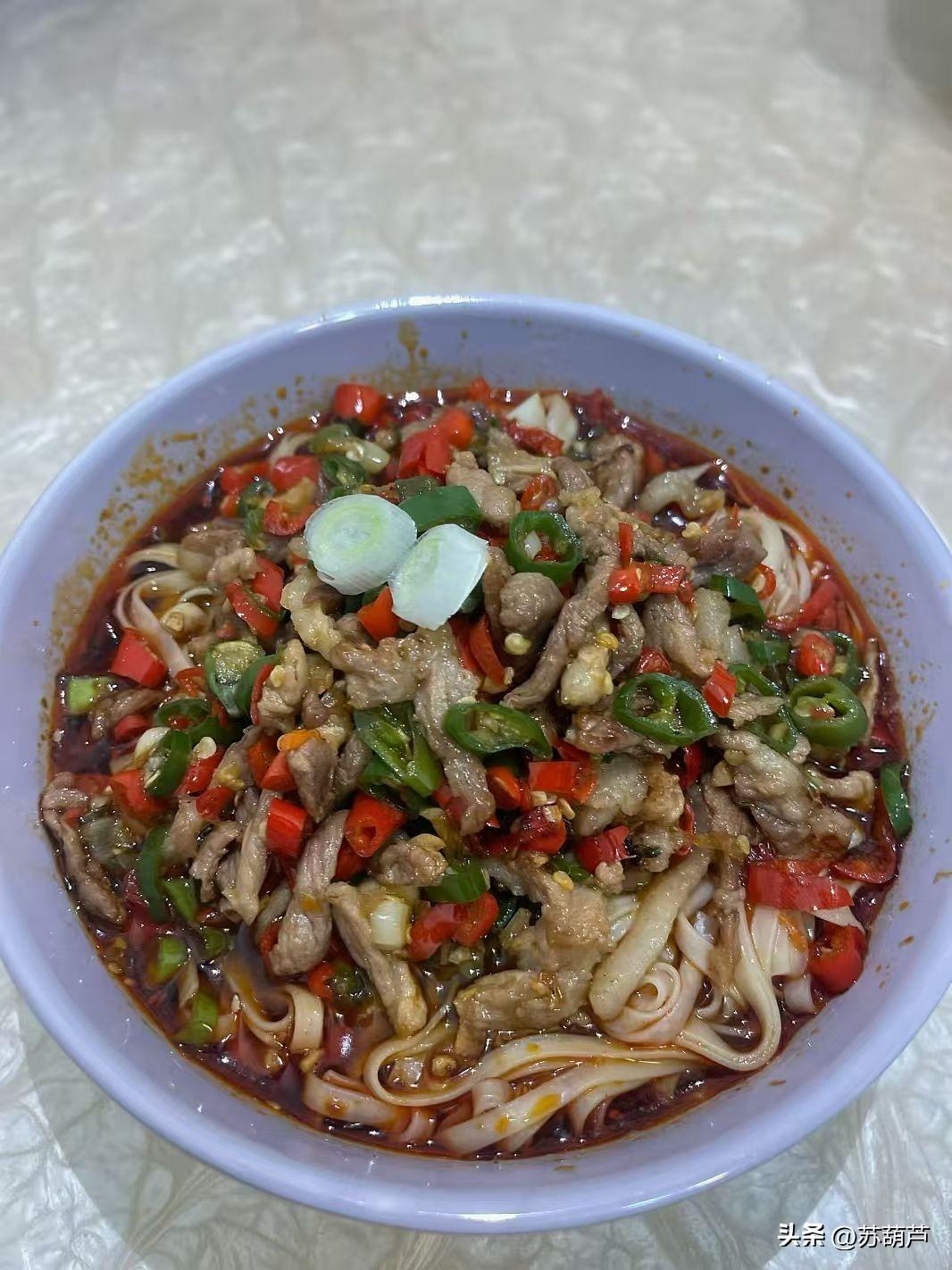 重庆人爱吃辣,果然名不虚传,你看这面条里都是辣椒,看着就辣。