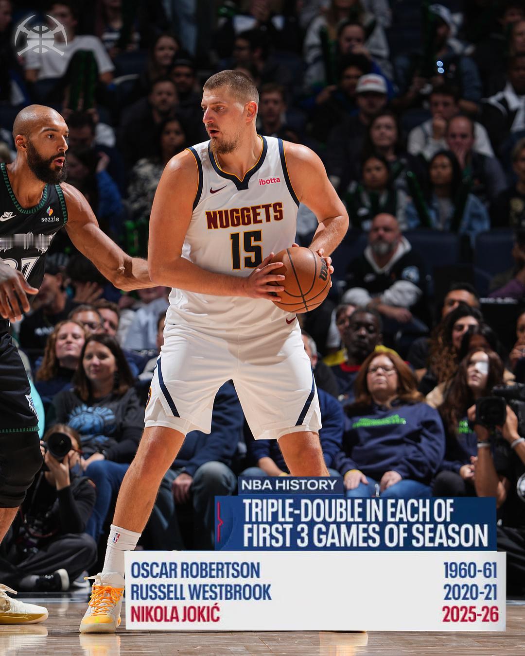 约基奇开季连场三双,这个胖子打球已臻入化境,历史三双王没跑了。拿三双对他已是家常便饭。 对阵勇士:21分13篮板10助攻 对阵太阳:14分14篮板15助攻 对阵森林狼:25分19篮板10助攻 他是在广告时间被选中的不起眼的海外球员,没有匹敌NBA球员的速度与弹跳,在他还没有闪闪发亮之前谁也不会多看他一眼,将他的模板定为小加索尔是对他最大的期待。命运的齿轮被他的潜力与实力硬生转动,如今的他又是谁都高不可攀的模板。 如今杨瀚森被誉为“中国约基奇”,看了小杨三场球,他有这个潜质吗?