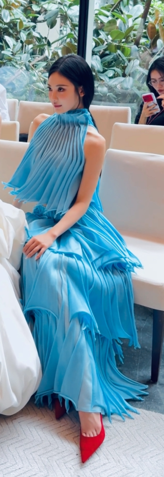 彭小苒的腰真是夺命的刀!这个侧身的角度,整个人薄薄的一片但却很有曲线,腰的厚度