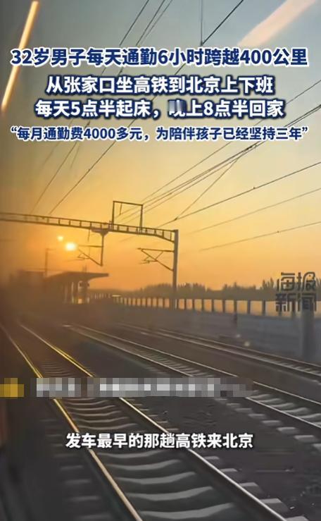 “这个父亲火了!”10月28日,北京,一32岁男子为了陪伴孩子,每天都要从张家口坐高铁跨越400公里到北京上班,来回需要6小时,他早上5点半起床,晚上8点半才能到家,每个月光交通费就4000元,网友:工资应该很高吧? 外地人在大城市工作需要面临很多问题,高昂的租房费用就是其中一点,一些在市中心工作的打工人为了能省点钱,往往会租偏远一些的房子,通勤时间得一两个小时,可比这更狠的大有人在。 一32岁男子家住张家口,孩子也在家这边上学,他为了能多赚点钱选择到北京工作,可这样一来就无法照顾老婆孩子,思来想去,男子决定每天坐高铁来回通勤。 早上5点半,男子起床,收拾完毕后开车到高铁站,坐发车最早的一班高铁到达北京,下班后男子再坐高铁回到张家口,一来一回花费在路上的通勤时间就是6小时,月交通费高达4000元,家里的高铁票都摞成山。 男子这一坚持就是三年,虽然远距离通勤大大压缩了休息时间,但是工作家庭能两不误,孩子得到父亲的陪伴,自己也能赚更多钱,男子很知足。 不少网友猜测男子的工资应该很高,不然花费这么多时间精力在通勤上不值当,不得不说,为了家人努力拼搏的男子,简直是世界上最帅的男人! 信息来源:《男子每天通勤6小时跨越400公里,从张家口坐高铁到北京上下班,每月仅交通费4000多元,为陪伴孩子已经坚持三年》海报新闻