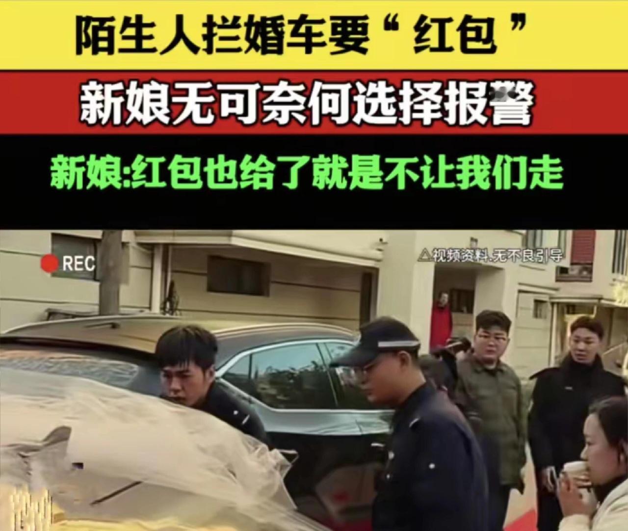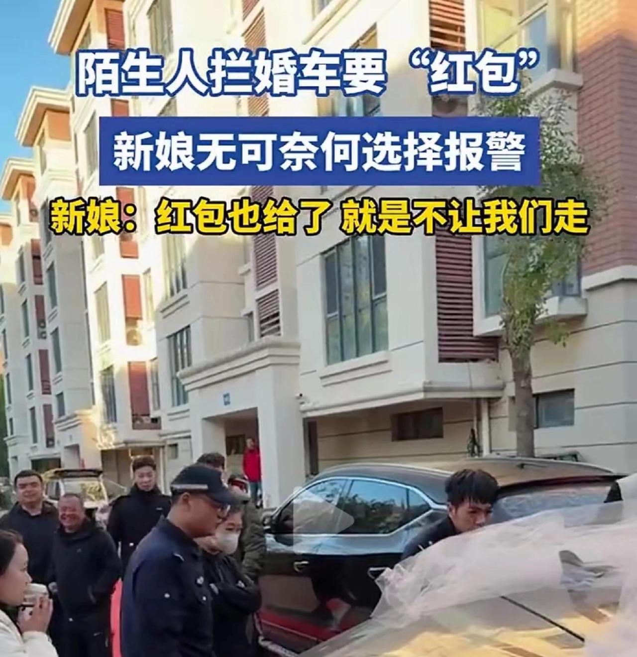 大喜的日子,婚车开着开着,突然被陌生人堵在路上要红包——这事儿放谁身上都得火大。 新娘子好声好气商量,红包发了一轮又一轮,那帮人反而更来劲,死活不让走。眼看要误了吉时,新娘还是个孕妇,被逼得没办法只能报警。要我说,这哪是讨喜气,分明是拦路抢劫。 现在有些“婚闹”早就变味了。老一辈人那会儿,街坊邻居说几句吉祥话,新人发点喜糖,图个热闹,一分钟就散。现在可好,专门有人蹲点婚车,不祝福不道贺,伸手就要钱,甚至开口就要“20条华子”,算下来上万块,不给就躺引擎盖、一起抬车,把喜庆事搅得乌烟瘴气。 还有人说什么“大喜日子别小气”,这就是道德绑架。新人的时间、安排都是卡着点的,被你一堵全乱套。这歪风不能惯,你这次给两百,下次就有人要五百。 真正的婚闹应该是藏婚鞋、让新郎表白这种有趣又热闹的环节,而不是陌生人明码标价地拦路。这次新娘报警做得对,对这种行为就不能软。习俗应该是让大家笑的,不是给新人添堵的。