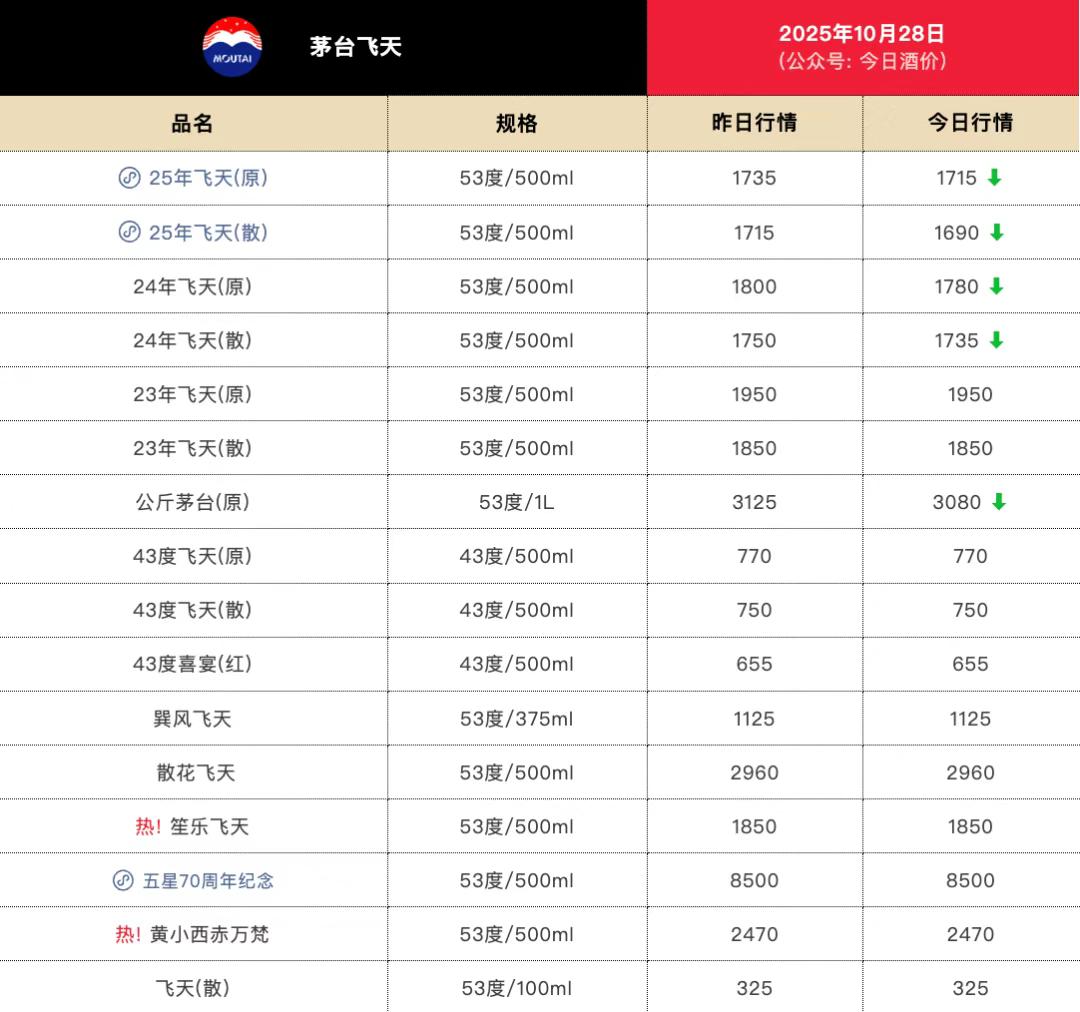 茅台价格跌破1700,酒企估计要频繁暴雷了! 1、飞天茅台的价格已经跌破1700元,估计年底就能看到1499的市场指导价; 2、口子窖发布了三季报,第三季度净利润为2696.51万元,下降92.55%,爆了个大的; 3、天佑德酒前三季度实现营收8.8亿元,同比下降10.79%,归母净利润2181.4万元,同比大幅下滑62.03%; 4、皇台酒业前三季度收入8708.31万元,同比下降23.25%,净亏损713.59万元,同比止盈转亏; 5、伊力特前三季度收入12.99亿元,同比下降21.46%,净利润1.37亿元,同比下降43.06%; 上市酒企中,我估计茅台的业绩应该还能维持,其他的酒企估计都会下降,这就是为什么白酒会错过本轮牛市的原因。 而且这一切,应该是刚刚开始,明年茅台的业绩可能也会下滑啊1