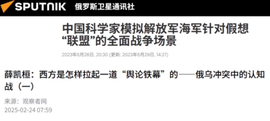 俄媒发出警告!2023年6月28日,俄媒引用我国科学家模拟全面战争场景,发出预测:中国只要打仗,就会有很多国家对付中国!   俄媒这话可不是随口乱说的,他们心里最清楚“抱团对付一国”是怎么回事——毕竟俄罗斯在俄乌冲突里,就亲身经历了被西方多国围堵制裁的滋味。俄罗斯看到美国拉着欧盟、英国等几十个国家,又是断贸易又是禁技术,光两年就搞了一万五千多项制裁,这种“群狼战术”的套路,自然会联想到中国身上。   在俄媒看来,美国现在把中国当成主要竞争对手,要是中国真卷入战争,美国肯定会故技重施,拉上自己的盟友一起施压,这是最直接的原因。   而且美国在亚太早就布下了“圈子”,这圈子里的国家很可能成为对付中国的帮手。你看日本,这几年把反舰导弹部署到离台湾才110公里的与那国岛,还跟着美国搞军事演习;菲律宾把巴拉望岛的基地租给美军,离黄岩岛没多远;韩国的“萨德”系统升级后,雷达能探到4000公里外,等于在北京上空架了个“透视镜”。   这些国家要么跟美国签了同盟条约,要么拿了美国的军事援助,一旦有事,美国一声招呼,他们很难置身事外。俄媒盯着这些军事部署看,自然会觉得中国一旦打仗,周边就可能先乱起来。   更关键的是现代战争早就不只是军队对军队的较量了,供应链、舆论场这些“软战场”同样要命。俄媒从俄乌冲突里看明白了,乌克兰背后有四十多个国家送武器、给情报,连无人机战术都有外国专家指导。   要是中国打仗,美国肯定会煽动其他国家搞供应链封锁,比如卡芯片、禁零件,就像之前中国稀土出口一缩减,欧洲不少车企生产线都停了。还有舆论上,西方媒体肯定会一起抹黑中国,拉拢那些中立国家站队,这样一来,“很多国家对付中国”的局面就真可能出现。   另外,有些国家本身就和中国有利益摩擦,正好会借机会“踩一脚”。比如印度,一直在藏南增兵,还买了外国的先进火炮;越南在南沙群岛搞了雷达站,盯着南海的动静。   这些国家平时就憋着劲,要是看到中国卷入战争,说不定会趁机挑事,要么抢占利益,要么跟着美国捞好处。俄媒熟悉这种地缘政治里的“趁火打劫”,所以才会把这些国家也算进“对付中国”的队伍里。   还有个深层原因,俄媒是想提醒中国,别低估了美国的动员能力。美国这些年一直在推“印太战略”,就是想把更多国家绑到反华的战车上。从澳大利亚跟着搞芯片禁令,到欧洲国家派军舰来南海“刷存在感”,能看出来美国确实在一点点搭建围堵中国的网络。   一旦真的打仗,这个网络就会立刻启动,从军事、经济、舆论多方面下手,那些被绑在网络里的国家,就算不情愿,也可能被美国逼着对付中国。   不过话说回来,俄媒这么说,也是因为他们自己尝够了被围堵的苦。俄乌冲突里,俄罗斯就算经济扛住了制裁,也被拖进了消耗战,这种滋味不好受。他们看到中国军力越来越强,怕中国不小心陷入类似的困境,所以才借着模拟战争的说法发出警告。毕竟在他们看来,美国最擅长的就是把局部冲突变成“国际围剿”,中国要是真打仗,就得防着这一手。   所以俄媒的预测,其实是把美国的套路、亚太的地缘局势、现代战争的特点凑到了一起。他们知道美国会拉盟友,知道周边有国家想挑事,知道战争会波及供应链和舆论,这些因素加起来,就得出了“很多国家对付中国”的结论。   说到底,这不是看衰中国,更像是提醒中国——真要打仗,面对的可能不只是一个对手,而是一整张由利益和霸权织成的大网。   信息源:薛凯桓:西方是怎样拉起一道“舆论铁幕”的——俄乌冲突中的认知战(一)-观察者网