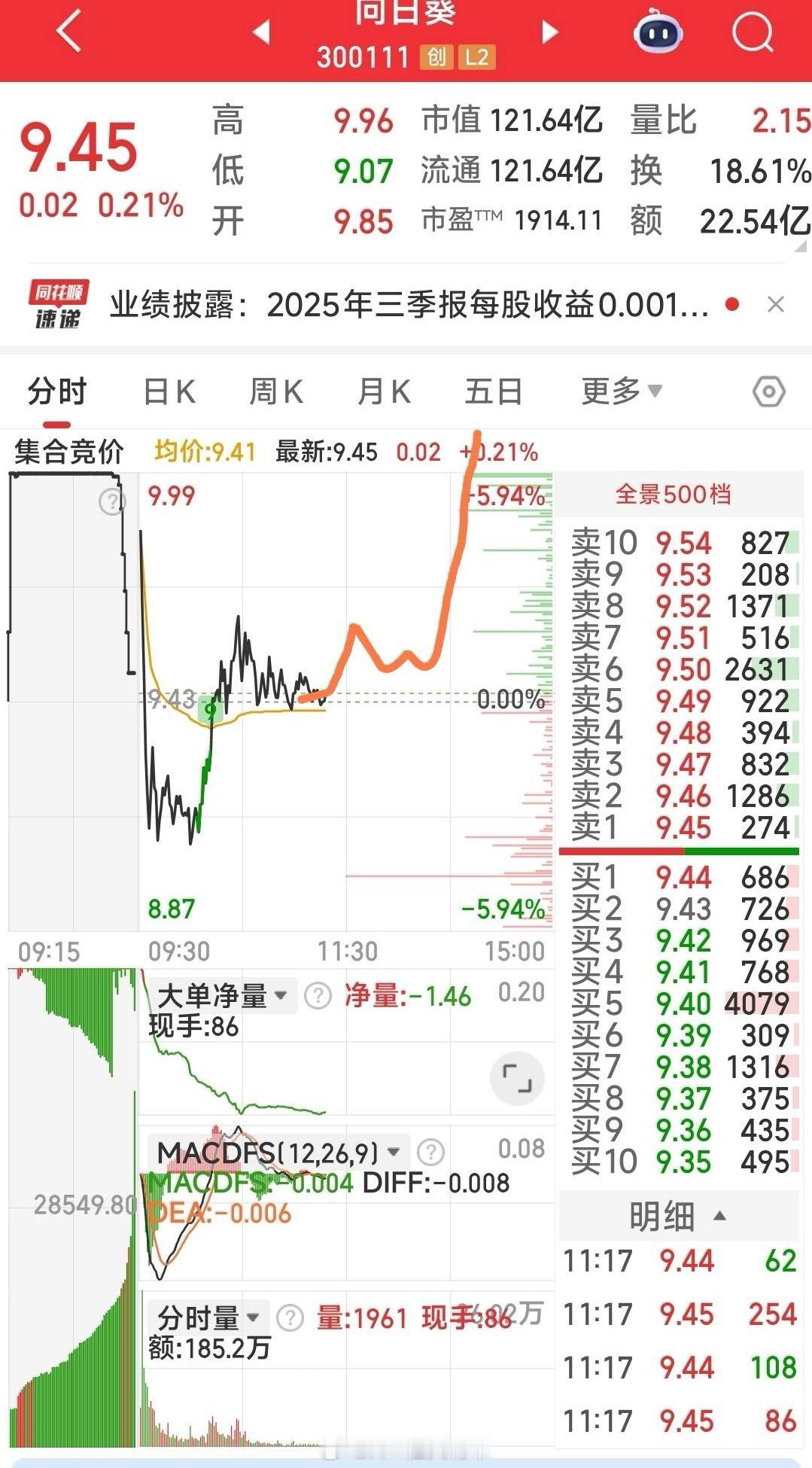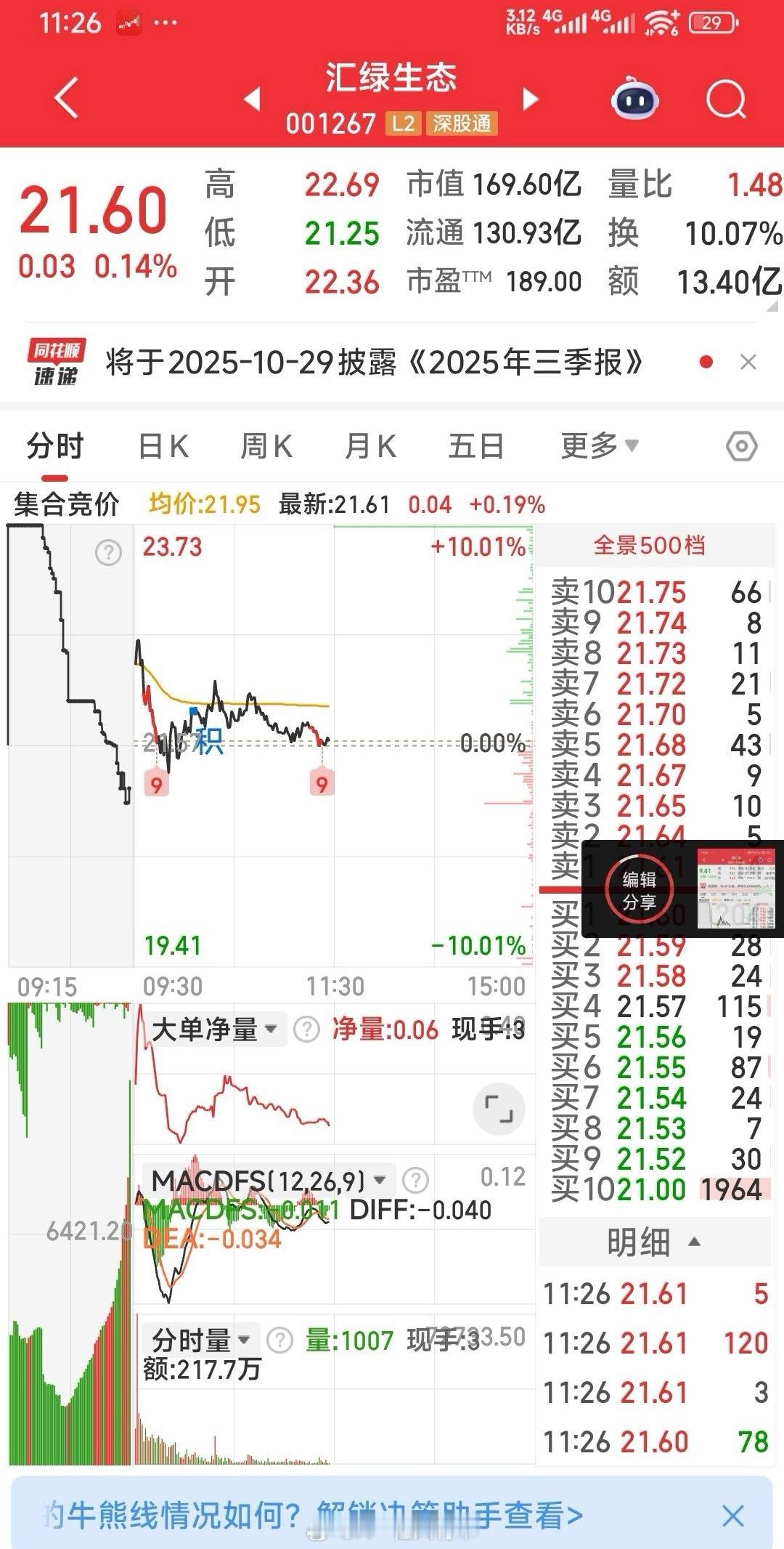 汇绿生态,出利好而不涨,赚4.5%见好就收,。因看好向日葵的后期走式,故9.4元