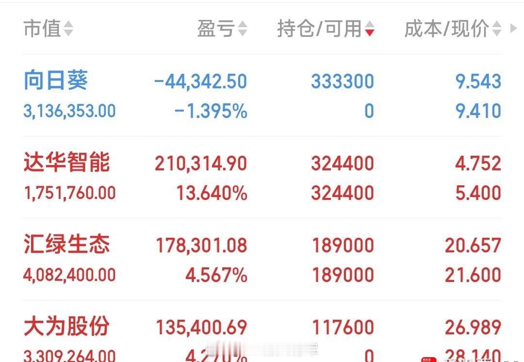 汇绿生态,出利好而不涨,赚4.5%见好就收,。因看好向日葵的后期走式,故9.4元全加仓至向日葵。