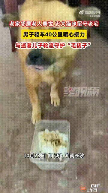 湖南长沙一位老人去世后,生前养的小狗和小猫都没有离开,而是守在老家彼此陪伴,但老人的儿子和儿媳都有病在身,且不住在老家,所以无法经常喂养,邻居的一名男子得知后,非常心疼小狗和小猫,于是和老人的儿子协商,轮流花时间喂养两只“毛孩子”,男子每隔两三天,就会特意开车40公里回老家喂食,对此男子表示,生命不易,自己会一直喂下去,网友看完这段视频,都觉得这名男子真是太暖心了,在邻居老人离世后,小狗和小猫都成了无主之物,可它们毕竟是两条生命,如果没有人喂养,只怕也很难存活,老人的儿子和儿媳或许有心喂养,但却无能为力,于是男子挺身而出,主动承担起帮忙喂养的责任,可见他真的很有爱心,相信他的小小善举,温暖的不止是两个“毛孩子”,也会是这个社会。大家怎么看呢?
