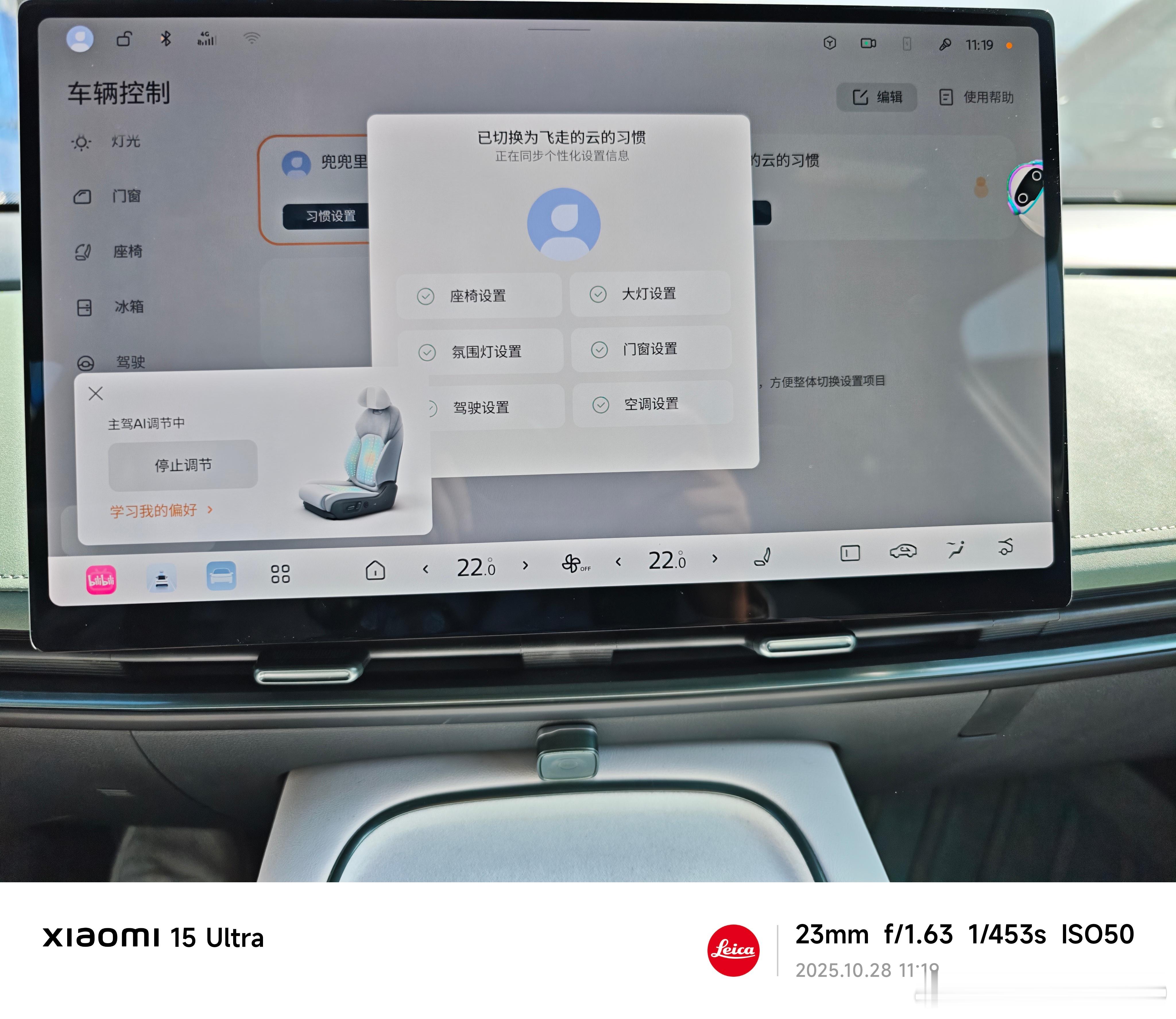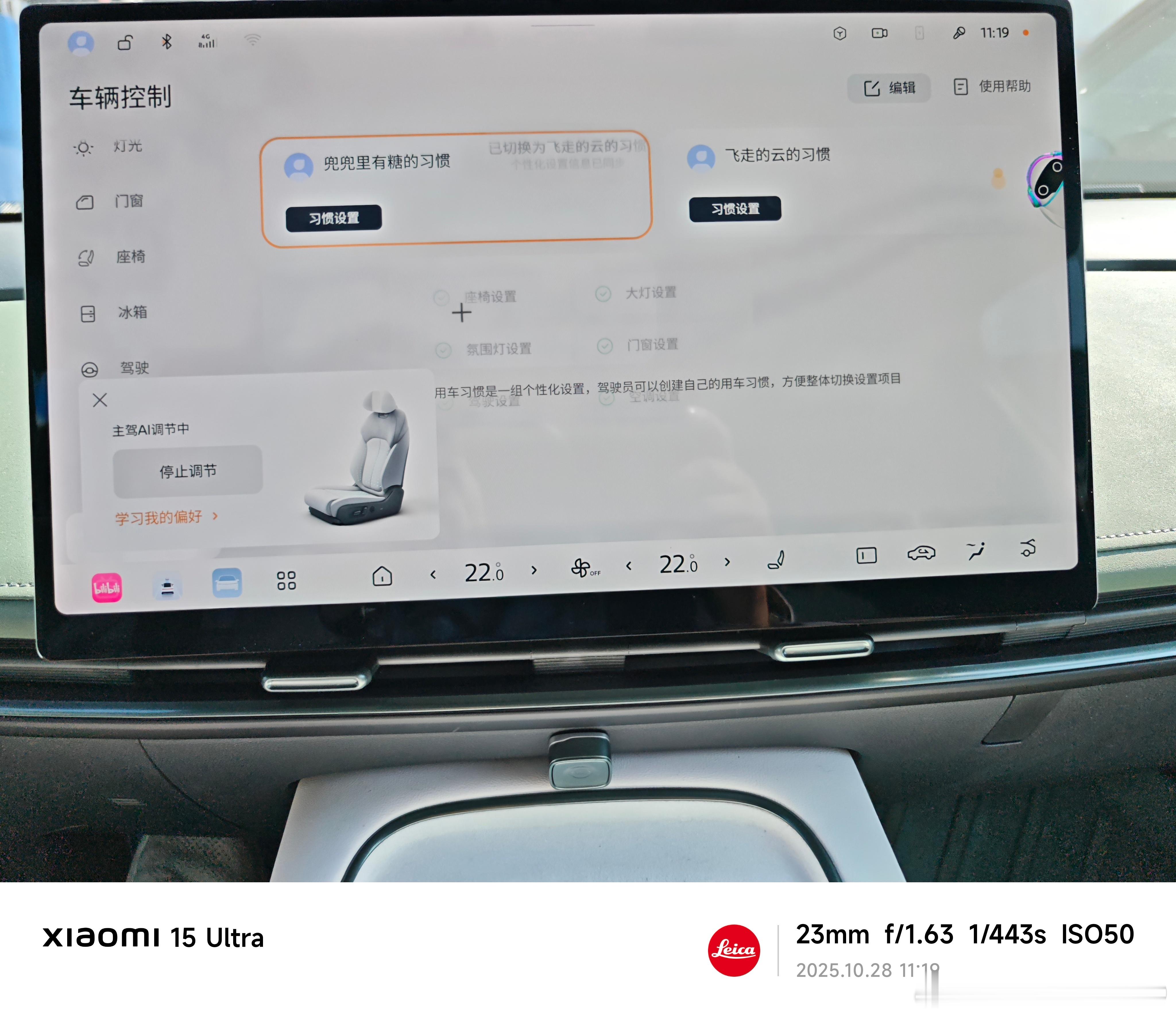 现在车内摄像头可以做人脸识别,然后座椅自动根据识别到的用户来进行AI调节