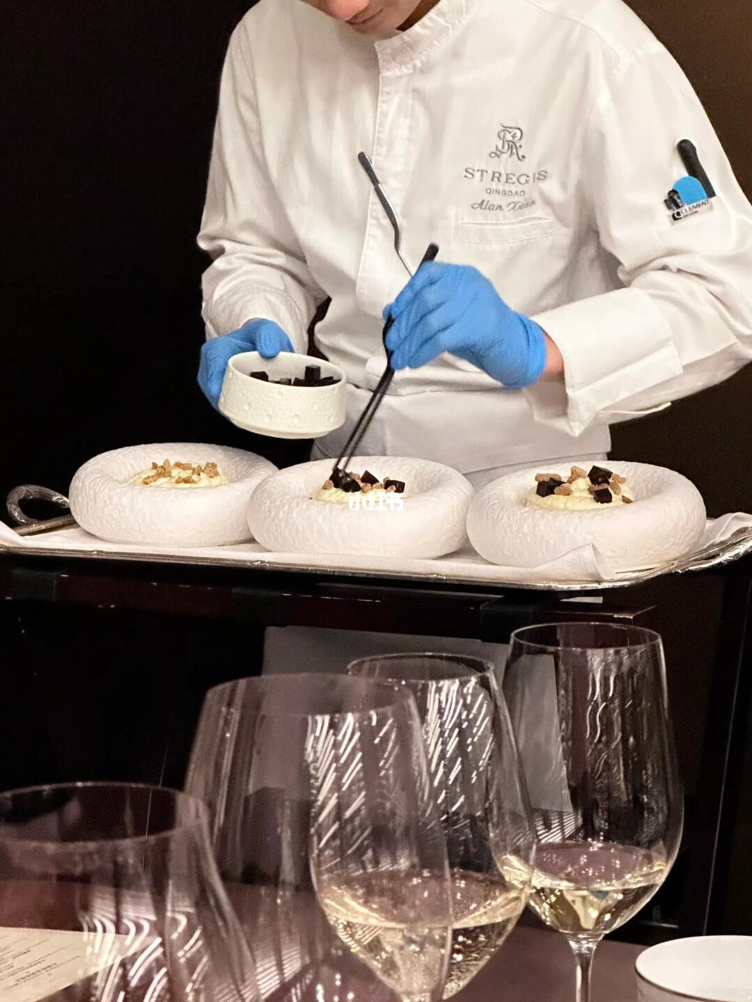 周末的快乐是瑞吉扒房红酒晚宴给的! 60层一览无遗的海岸线 夜景下如电影画面一般静谧浪漫 不仅仅可以大快朵颐 喝到好喝的酒与微醺后的灵魂久别重逢! 疯狂点赞牛排和餐前面包 搭配黑松露酱太美味了 每次都被这个餐前面包折服