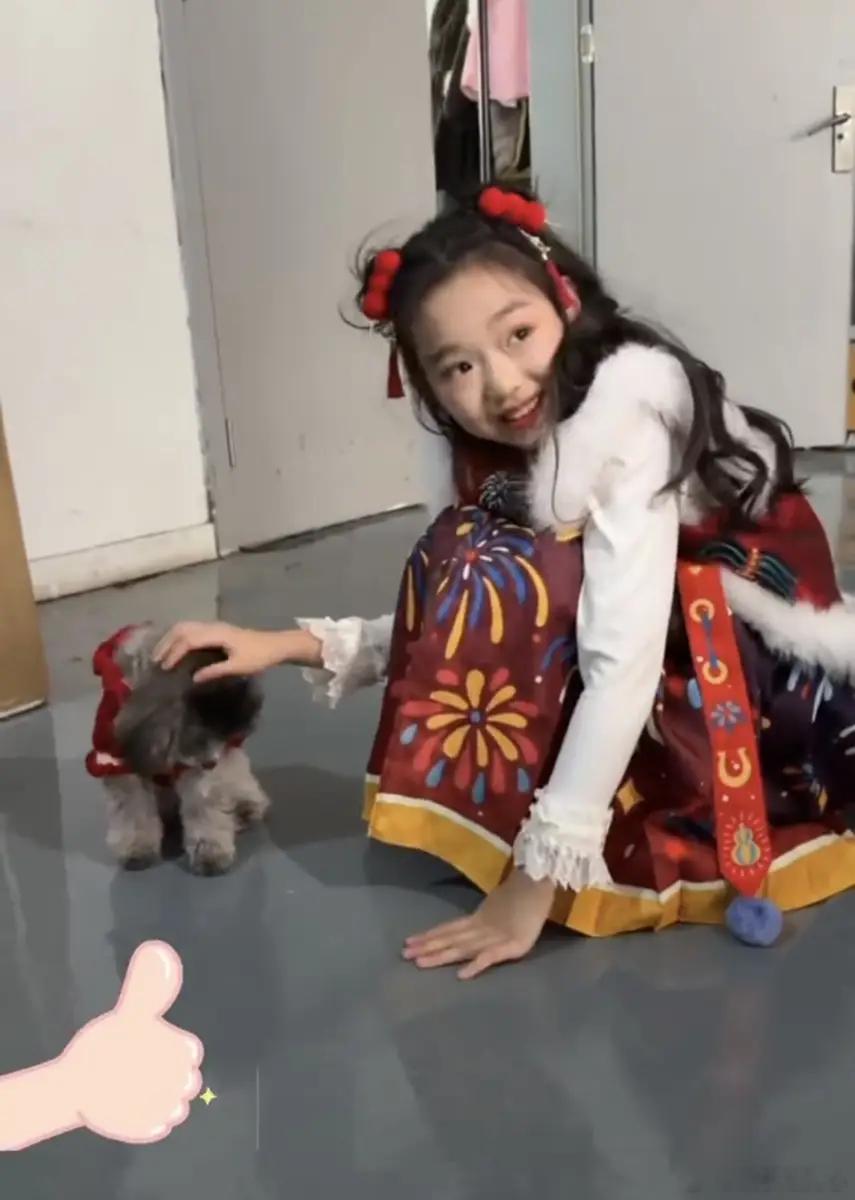 10月28日,小酒窝分享周末和朵朵逛街的vlog。图中,小酒窝扎着双丸子头,和小狗玩耍,画面可爱。