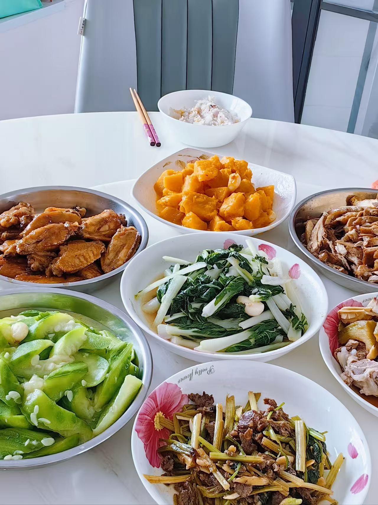上周末孩子不上学,我大姑姐一家三口来我家看我婆婆,一大早我就去菜市场买菜做饭,忙活了大半天终于做好了,大小做了7个菜,也不辣,大人孩子都能吃,没想到大姑看了眼桌上的菜就把我拉到一边,小声说“你这做的啥呀,没一个硬菜而且你怎么就做7个菜呢?赶紧去做多2个菜吧”。我当时听完就愣了,气的半天没理她——我忙前忙后累得腰酸背痛,咋就不算硬菜了? 我做了可乐鸡翅、五杯鹅、还炒了芹菜牛肉,还有鲍鱼凉瓜焖排骨,素的也炒了两三个,都是家里人爱吃的口味。现在越想越纳闷,到底啥才算硬菜啊?是必须得一大盘肉,还是得贵得离谱的菜才算?而且总共就8个人,其中有2个是小孩子。友友们,你们评评理。8个人这桌菜不够吃吗?