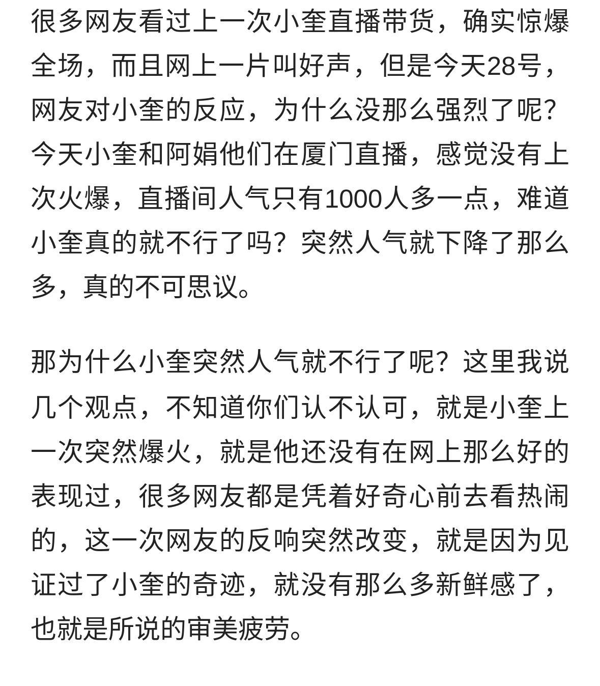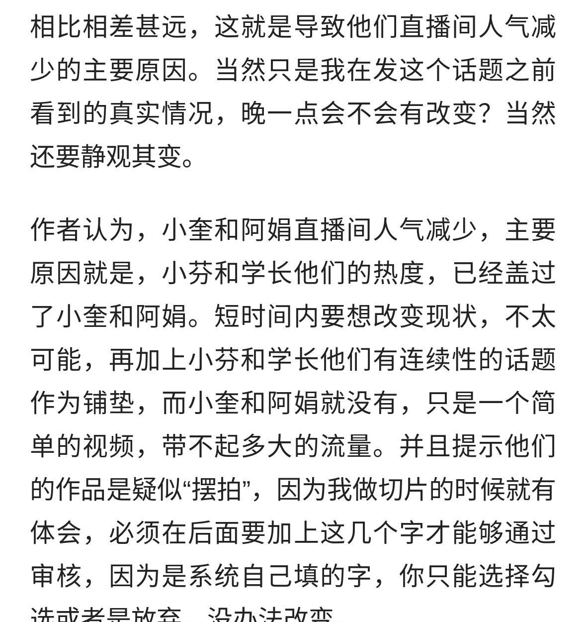 小芬和学长一跪,全网都屏住了呼吸。 小奎阿娟直播间,弹幕突然稀了。 不是谁输了,是大家看腻了同样的剧本。 求婚能爆,不是因为爱得多深,是够新、够敢、够上头。 平台不认老粉,只认新梗。 你演了三年“甜蜜日常”,人家五分钟给你整出“全场泪崩”。 别骂流量被抢,得问自己: 还能不能掏出点让人想截图、想转发、想@闺蜜的东西? 别等观众走光了,才想起改剧本。 网上的爱,从来只给会变的人。