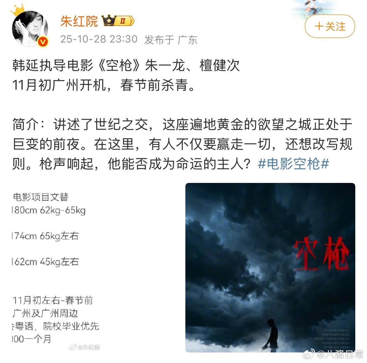 朱一龙、檀健次《空枪》要开机了,开始找替身演员了