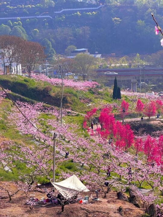 等了一年 终于要等到龙泉山桃花盛开了!!! . 很多人来这里徒步🚶拍照、赏花🔍晒太阳🌤️ 还有很多人来遛狗🦮 在花海里野餐🧺、露营🏕️ 真的好浪漫好chill~ . 🚘自驾:龙泉宝狮村 🎫门票:免费的,直接去就行 🚌公交:地铁2号线龙泉驿转公交862路 🕒拍摄时间:去年3.21左右拍摄(现在少些已慢慢开了)