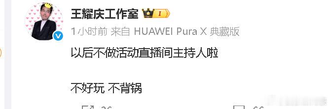 王耀庆工作室回应对钟楚曦贴脸开大王耀庆工作室 不好玩不背锅 28日晚,ELLE盛典后台直播中王耀庆对钟楚曦贴脸开大引发热议。稍晚,发文回应此事:“以后不做活动直播间主持人啦,不好玩,不背锅。”
