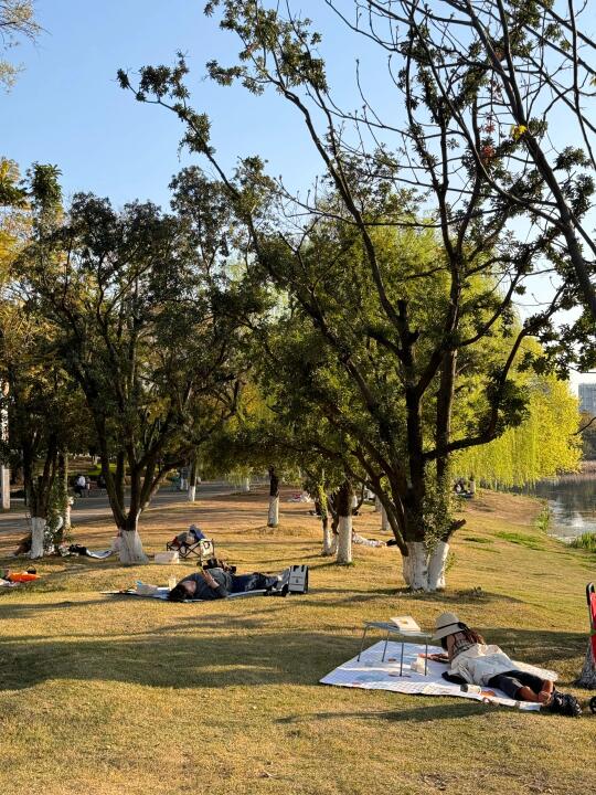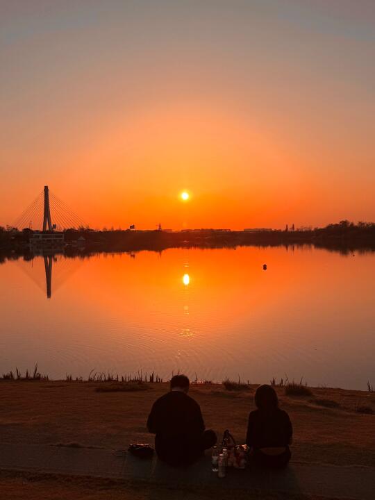 感觉一万个人都来锦城湖[搜索高亮]看日落晚霞🌅 顺便感受下成都人的松弛感~