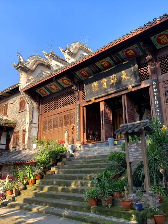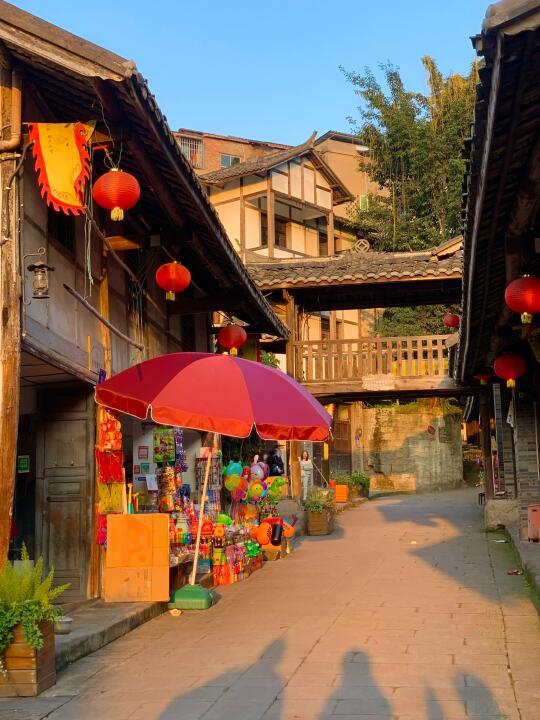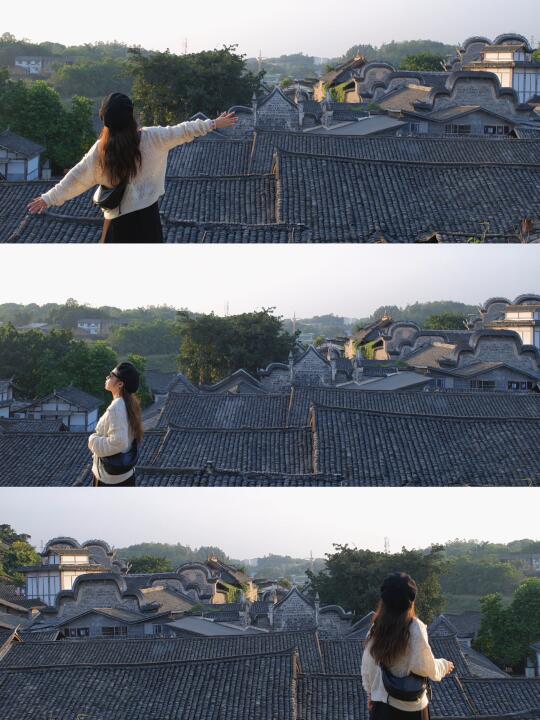成都出发🚄1小时 就来到了中国盐运第一镇——仙市古镇 这里青砖黛瓦,古朴又充满市井烟火气息 慢慢走在古镇上,真的很chill~ . 📍:仙市古镇 🚄:成都🚄自贡仅1小时(就在自贡站旁边,打车几块钱) 🎫:免费、不需要预约,直接去就行! . 📷拍照点位: 1.古镇门口的“仙市古镇” 2最高的观景楼(图1),导航:“仙市镇雅林阁观景楼”,之前去是5r一个人,可以俯瞰整个古镇,很有特色!拍照也很好看🤳 3.导航:乐乐幼儿园,就在斜坡这里 不想花钱又想拍照的来这里,也能俯瞰整个古镇 4.各个街道都很有烟火气息,很适合拍照! . ✔️我们周六下午来的,人也不多,大多数都是本地人,傍晚的阳光洒在整个古镇上,好美好chill~附live实况图🌅 ✔️古镇上有很多小吃,烘肘、炸小河虾、烤兔、香碗、豆花,喜欢的可以试试! ✔️古镇不大,适合来自贡玩的时候顺路来!走走逛逛,拍拍照🤳两三个小时差不多;也可以在河边晒太阳,喝喝茶🍵小坐一下午! ✔️这有一个很大的祠堂,和好几个寺庙,免费的,喜欢的朋友可以逛逛~ ✔️釜溪河河边可以坐船,也有茶馆可以坐着喝茶聊聊天打打麻将🀄️,有很多当地老人坐在路边很有市井气息 . 自贡1️⃣日游路线 梵华打卡“小香港”- 盐业历史博物馆 -华商(自贡打卡墙)-自贡恐龙博物馆-燊海井-仙市古镇-动车🚄