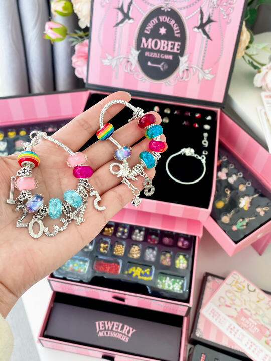 (⊙o⊙)哇哦!现在的小朋友也太幸福了吧! 为嘛我小时候没有这介么好看的DiY串珠礼盒! 怎样才能让她同意借给我玩一下呢?[斜眼R]