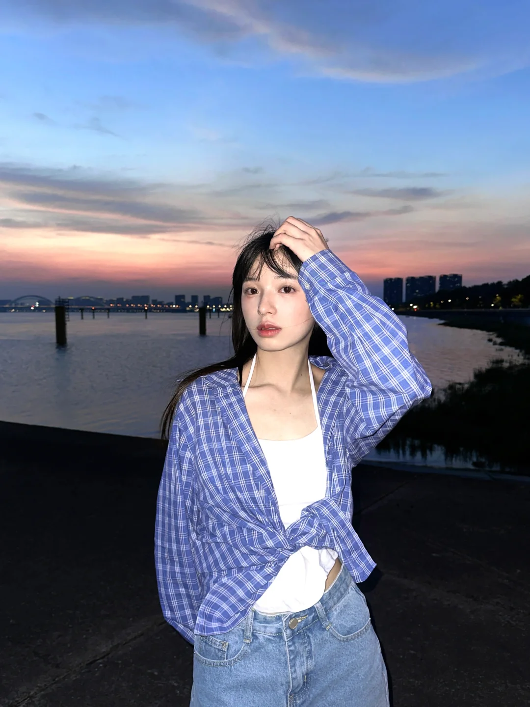 夏日清新穿搭,条纹背心+高腰短裤,轻松自在,元气满满!🌞👗💃