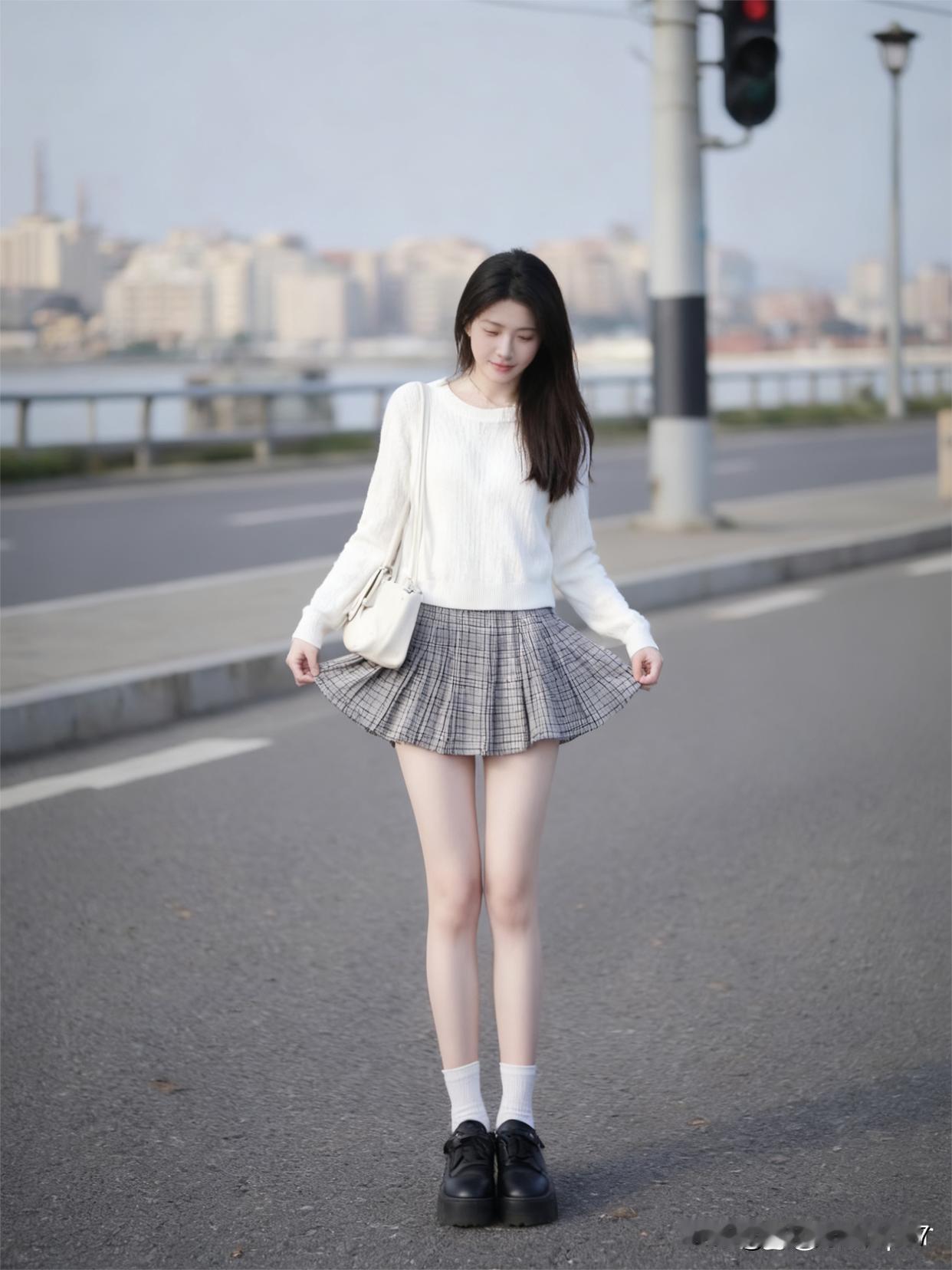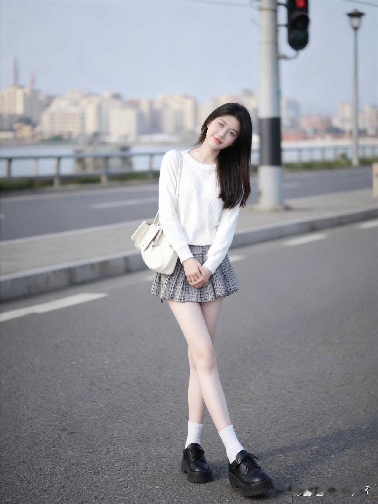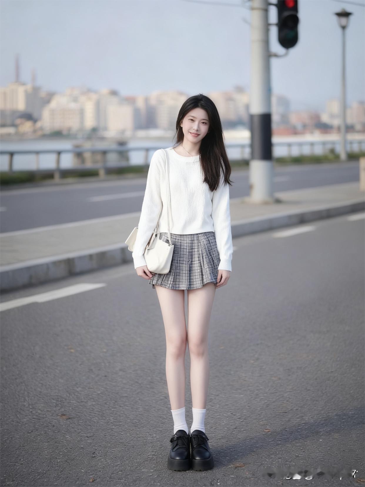 青春洋溢的街头少女,总能用穿搭点亮城市街头。就像那个穿白色毛衣搭格纹短裙的少女,白色毛衣温暖柔和,自带清新感,灰色格纹短裙活泼俏皮,两者搭配在一起,青春气息扑面而来。 其实街拍里还有很多类似的亮眼搭配。有小姐姐用白色短款针织衫配灰色格纹短裙,气质清新;也有人用白色毛衣搭皮质短裙,优雅又迷人。不同的搭配展现出少女们的多样魅力,她们轻松自在地漫步,就是街头最美的风景。