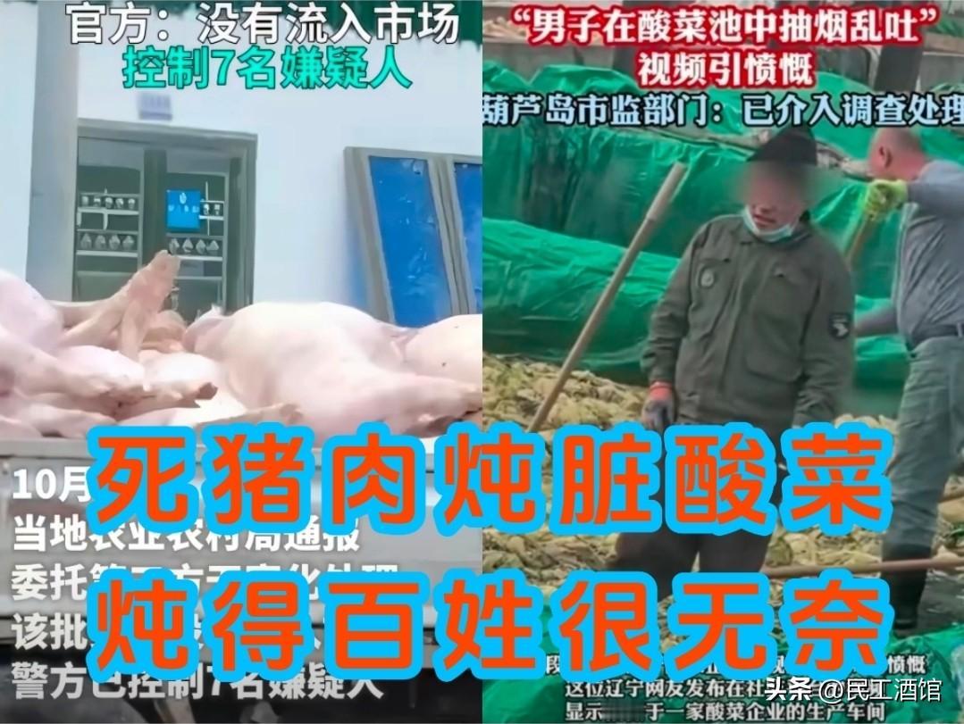 死猪肉炖脏酸菜,炖得百姓很无奈! 食品卫生安全之疾为什么久治不愈? 近日,广东辽宁一南一北都出了问题,“猪肉炖酸菜”这道菜,还让不让老百姓吃了! 广东一肉联厂被发现收有大量死猪,辽宁一酸菜厂被发现工人往酸菜池中吐痰,还吸着烟干活。总看CBA的网友都知道,广东队辽宁队总是较劲,两队的粉丝总是互掐,如今,这两个省的较劲已经从篮球场中发展到菜篮子里了。 一南一北两个省同时出问题,其它省的人恐怕也会担心。一边是猪肉,一边是酸菜,刚好是个常见菜,猪肉炖酸菜……只是,如此猪肉,如此酸菜,这要炖出来,老百姓敢吃吗? 这些年食品卫生安全问题常有发生,每次也都调查也都处理,可是为什么,这种问题还是不断出现呢? 每次如果后果严重,相关监管部门的人也有被处理的,要是后果不严重,一般就只处理具体的厂家,现在我们是不是该反思一下,这样的处理,是不是效果有限呢? 首先是不能总在出事后才想到处理啊,问题都出了才发现,你就算处理一些人,当时安定一下人心,可下次问题依旧,多出几次,人心惶惶……再说,在发现问题之前,已经被人们吃进去的脏东西或致病物给人们的健康带来的危害,也无法清除啊。所以,是不是事前的监管过程有问题呢? 其次,就说事后的处理,程度上是不是也太轻,以至于威慑力不够呢?或者范围上太小,以至于影响面有限呢? 要我说,偶尔出几次问题,可能是问题厂家的管理者生产者们个人的问题,可一个社会在很多年的时间里反复出现食品卫生安全问题,那恐怕就不能只说是个人的问题,或许我们更该问的是官方,你们怎么管的,你们是干嘛吃的? 我建议全国各地的负责食品卫生安全的官员们,这两天,吃一次猪肉炖酸菜,一边吃一边反思两个问题,第一,自己是干嘛吃的?第二,还能不能让老百姓安安心心地吃着猪肉炖酸菜?有些地方平时不怎么吃这道菜的,现在也得吃吃,酸爽有助于反思。 当官不能让老百姓吃放心菜,不如回家去炖猪肉酸菜!
