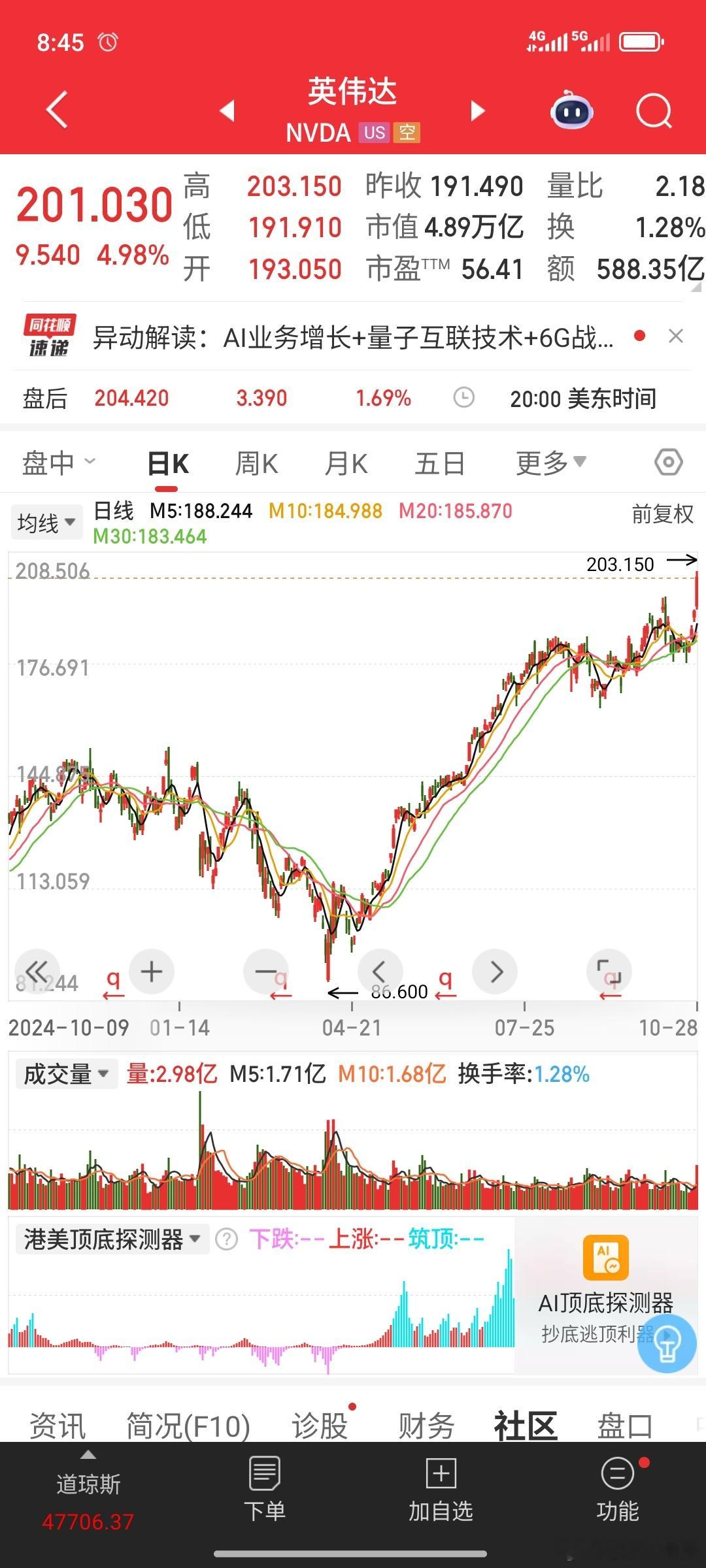 英伟达再次创新高了,离5万亿只有一步之遥,一周涨了10%,那些天天说科技泡沫要崩盘的老登都不吱声了。