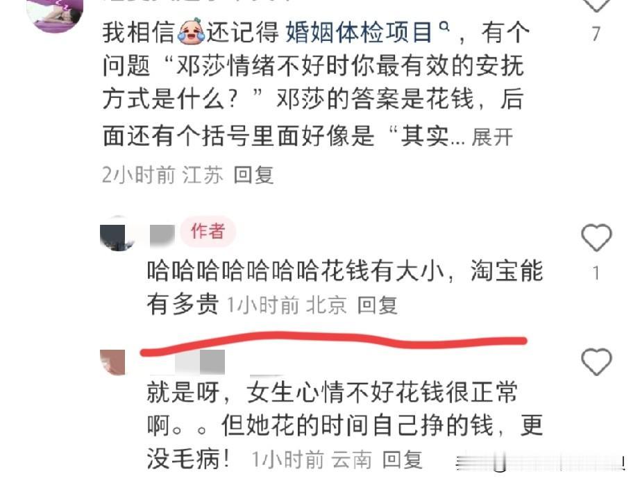 邓莎有离婚的想法,这个“闺蜜”应该出力不少吧! 在🍠上回复邓莎的相关问题可积极了,话里话外都在内涵路行。 暗示邓莎过得挺穷的,买的都是淘宝,还得赚钱贴补家用,路行只养儿子不养邓莎 这是🈶多恨路行啊! 让我想起来路行在节目上说的话了,「她可能都没见过你,就在背后各种说你不好」 哈哈~( ̄▽ ̄~)~ 他估计知道,邓莎的闺蜜很多这样的,所以才会在节目上那样说吧。 这闺蜜也是够奇葩的!人家上个节目,她在下面蹦的比谁都高。 要是最后邓莎没离婚,她不觉得尴尬吗?