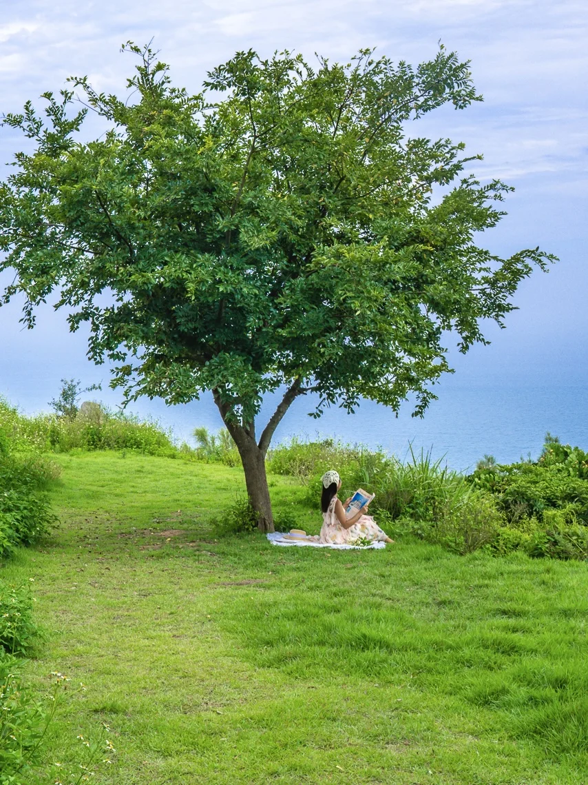 人少景美,有颗孤独的小树和椅子,远处是美丽的风车和大海,面向大海还有一大片草坪,还可以露营,野餐简直太治愈了