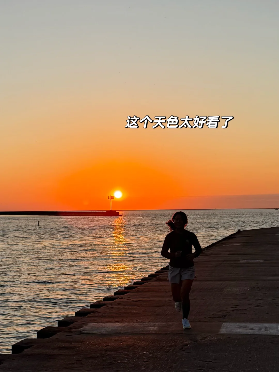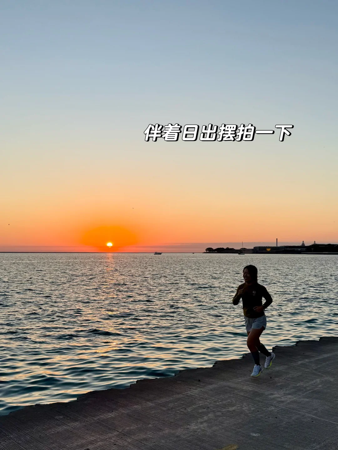跑到6:50,密歇根湖上,日出了~