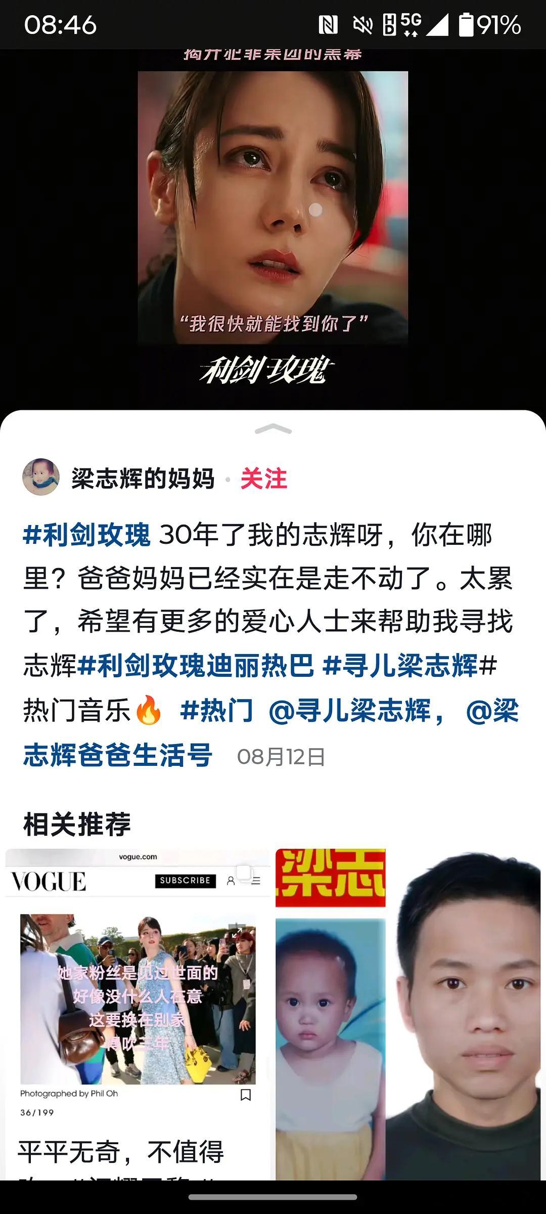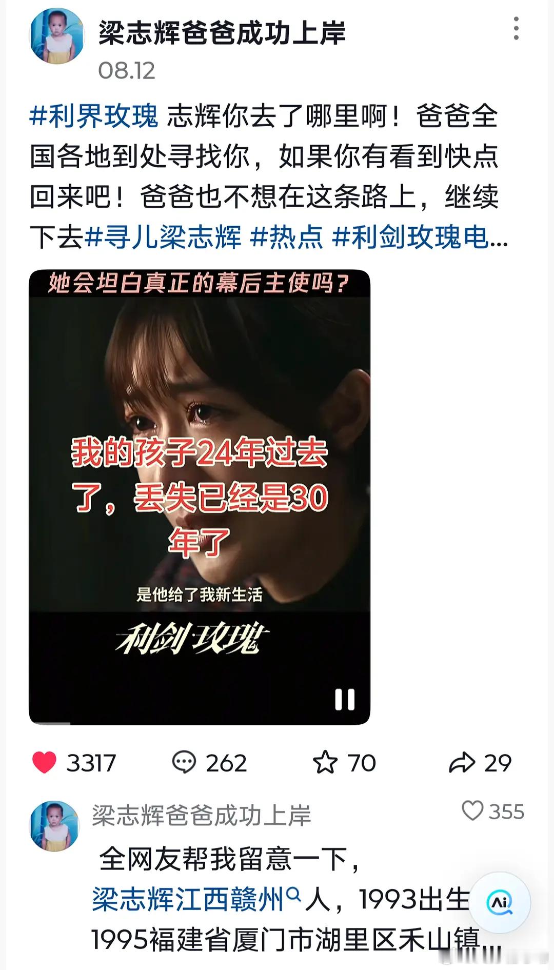 真好啊!迪丽热巴利剑玫瑰最强售后!丢了30年的梁志辉终于找到了,巴粉真的很好,这就是正能量偶像的意义。愿天下无拐! 迪丽热巴粉丝帮助寻亲梁志辉
