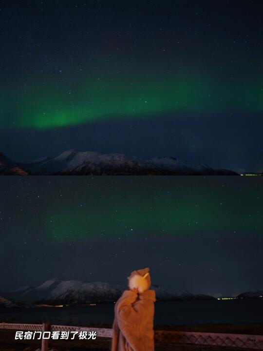 晚上在民宿门口就看到了淡淡的极光,我是每次来北欧都能看到极光的幸运儿✌️