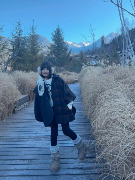 户外按照温度穿搭,带上帽子围巾手套就不会冷。