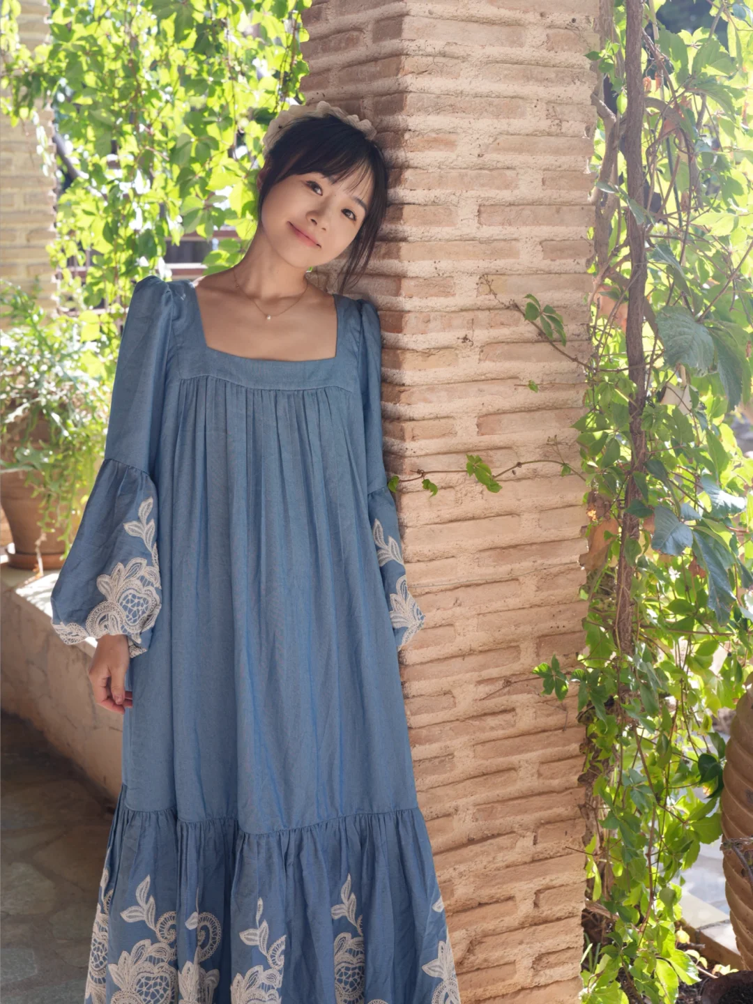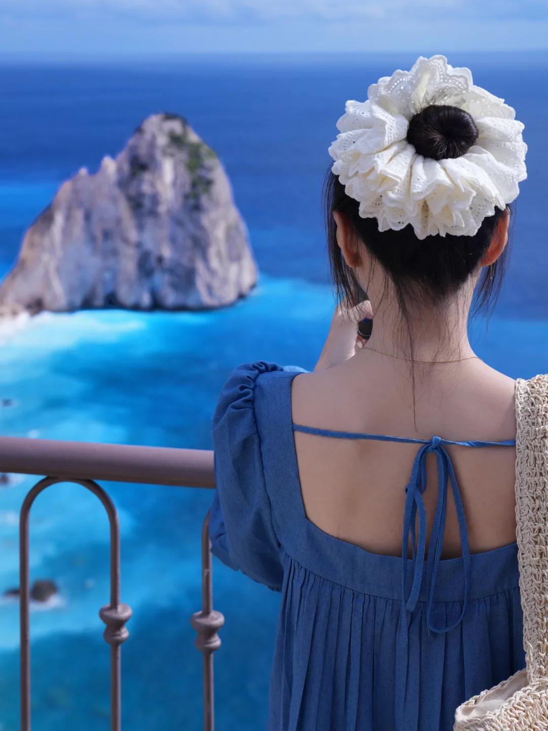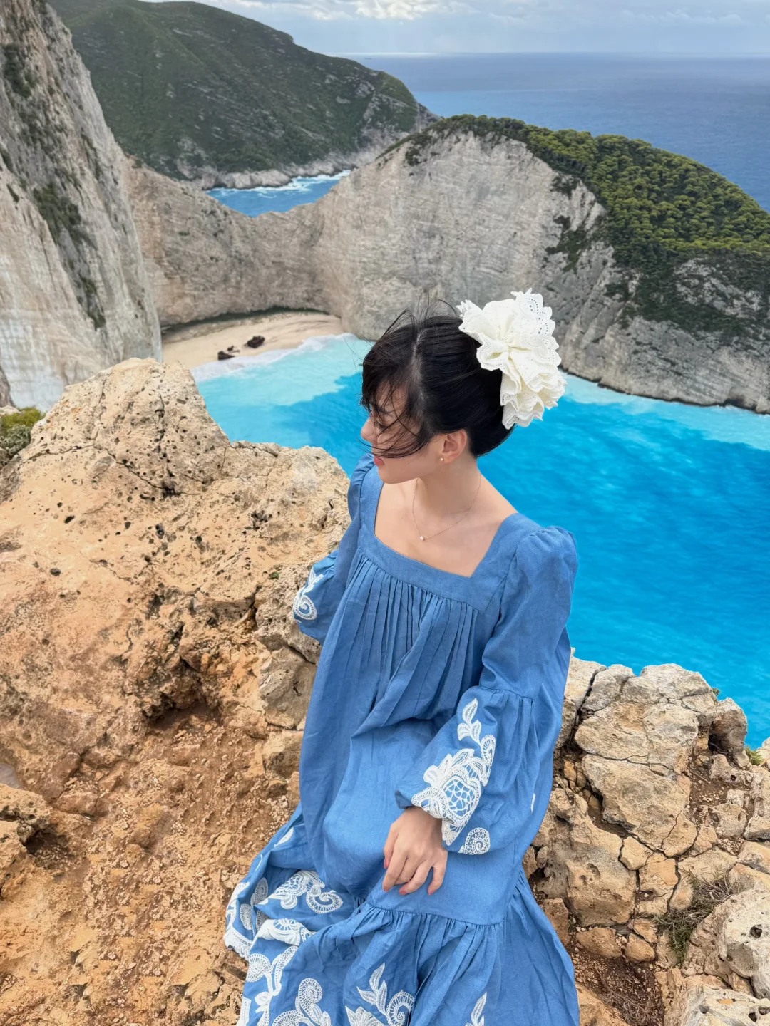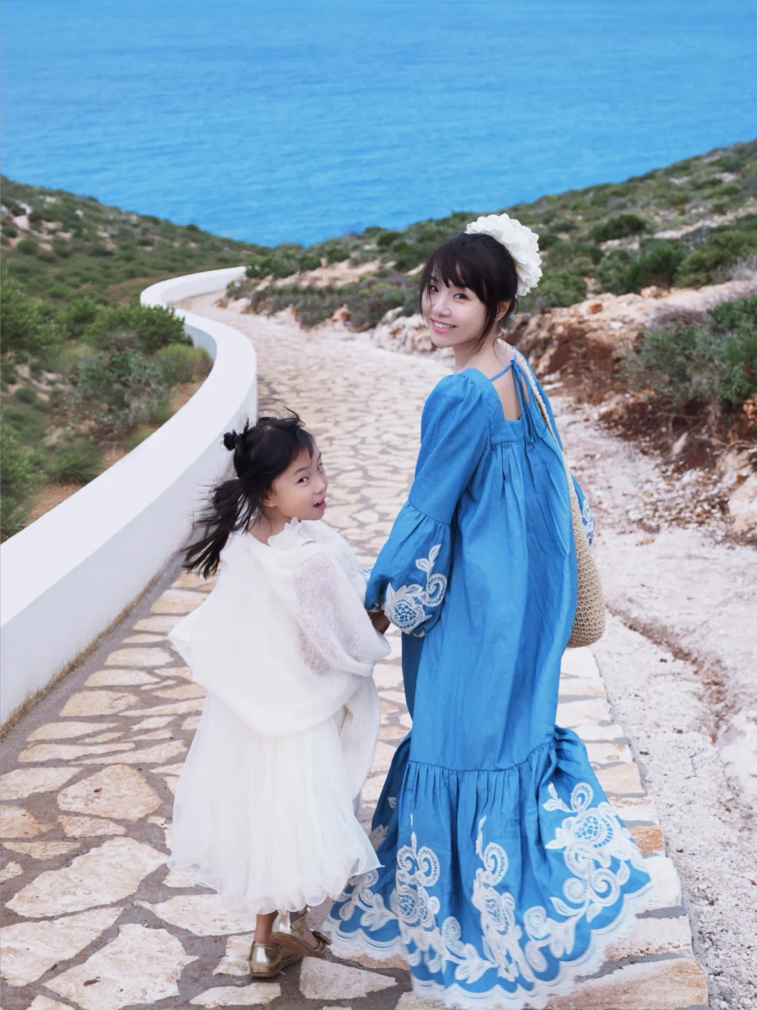 10月希腊只有20度,吹风体感15度,这条有点厚度的长袖连衣裙真是救了我的命,而且搭配这种大的发圈很出片。