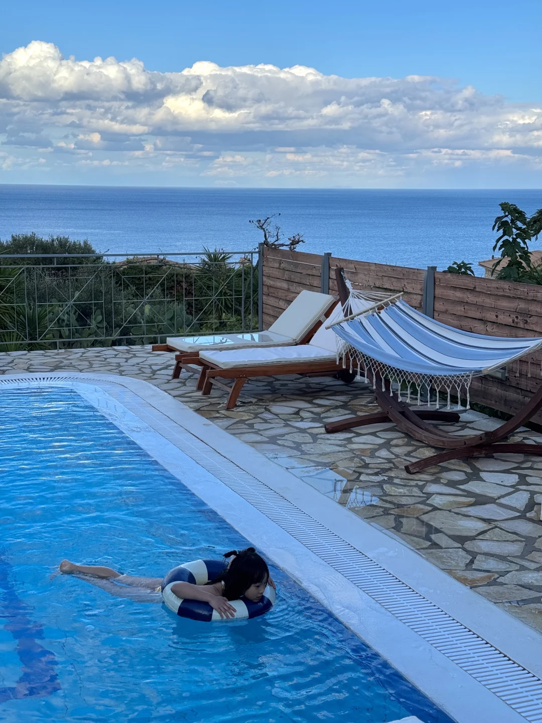 这次在北部港口定了带泳池的两层海景别墅,睁开眼就能看日出,泳池很大,风景特别美。