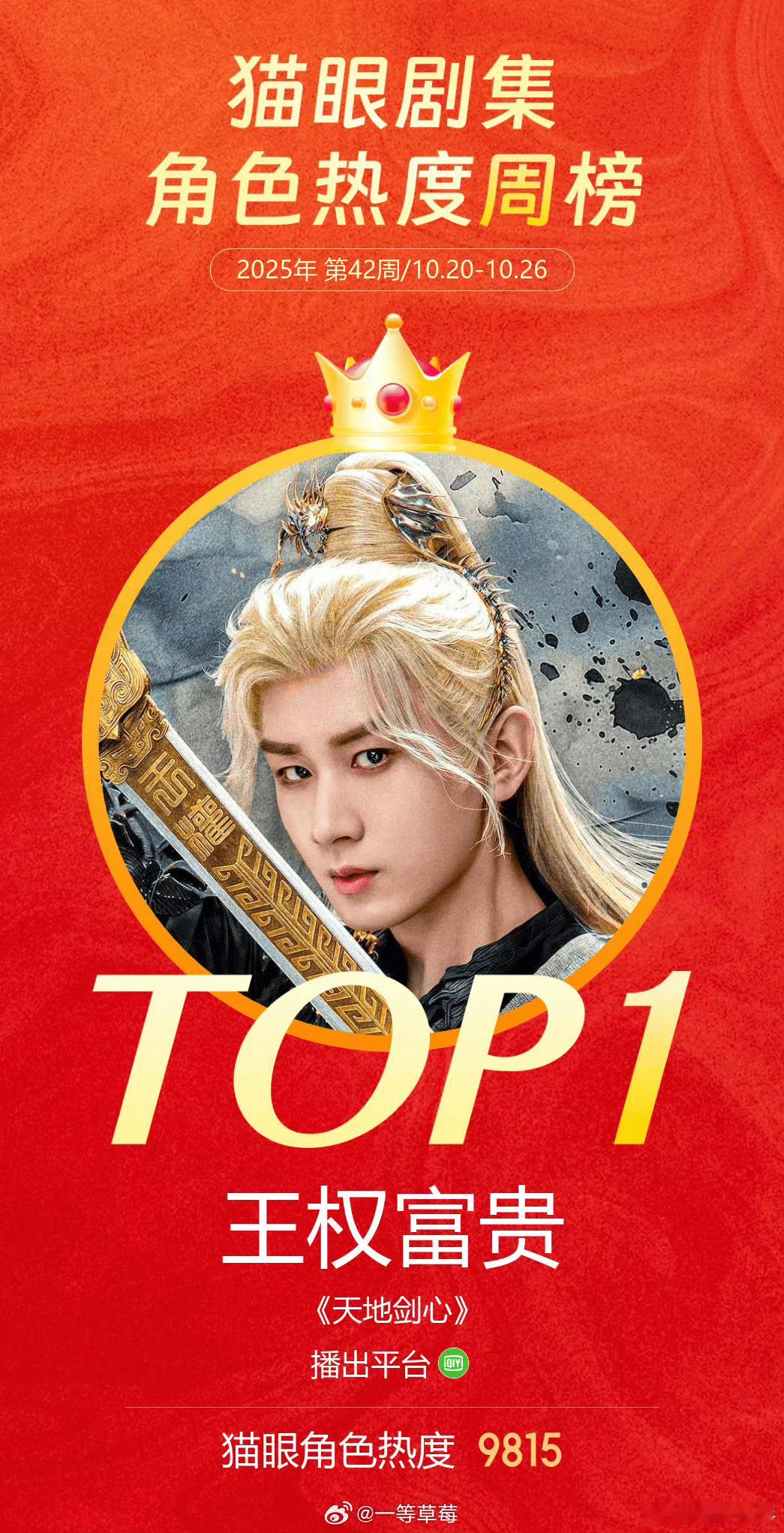 成毅《天地剑心》王权富贵获猫眼角色热度周榜冠军!